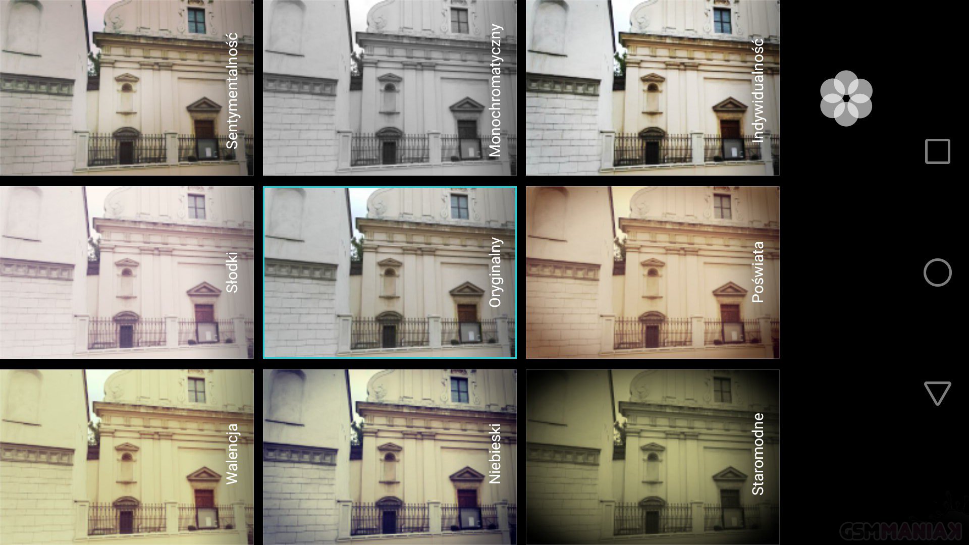 Aplikacja aparatu została zmodyfikowana względem tej, którą znamy z czystego systemu. Zmieniono nie tylko oprawę graficzną, ale także funkcjonalność. Program oferuje szereg ciekawych funkcji z opcją manualnego dostosowywania parametrów. Możemy wybierać spośród szeregu filtrów, a także trybów robienia zdjęć.