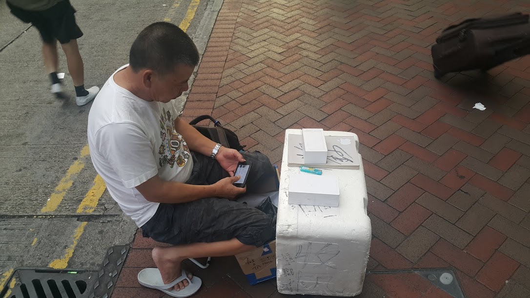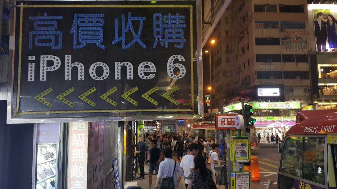 Telefony Samsunga można było kupić praktycznie na każdej głównej ulicy w dużych sieciach sprzedaży. Apple natomiast zaimponował dwupiętrowym sklepem w centrum miasta, z widokiem na esencję Hongkongu. Gdyby jednak werdykt miała wydać społeczność napotkana podczas przemierzania ulic Hongkongu, zdecydowanie wygrałby Apple. Produkty z jabłuszkiem nieodmiennie stanowią o statusie społecznym czy po prostu są modne, a Hongkong bogaty. iPhone’ów było sporo, jednak moje kalkulacje mogły zostać przekłamane przez alternatywne kanały sprzedaży, bezpośrednio z ulicy, jak poniżej.