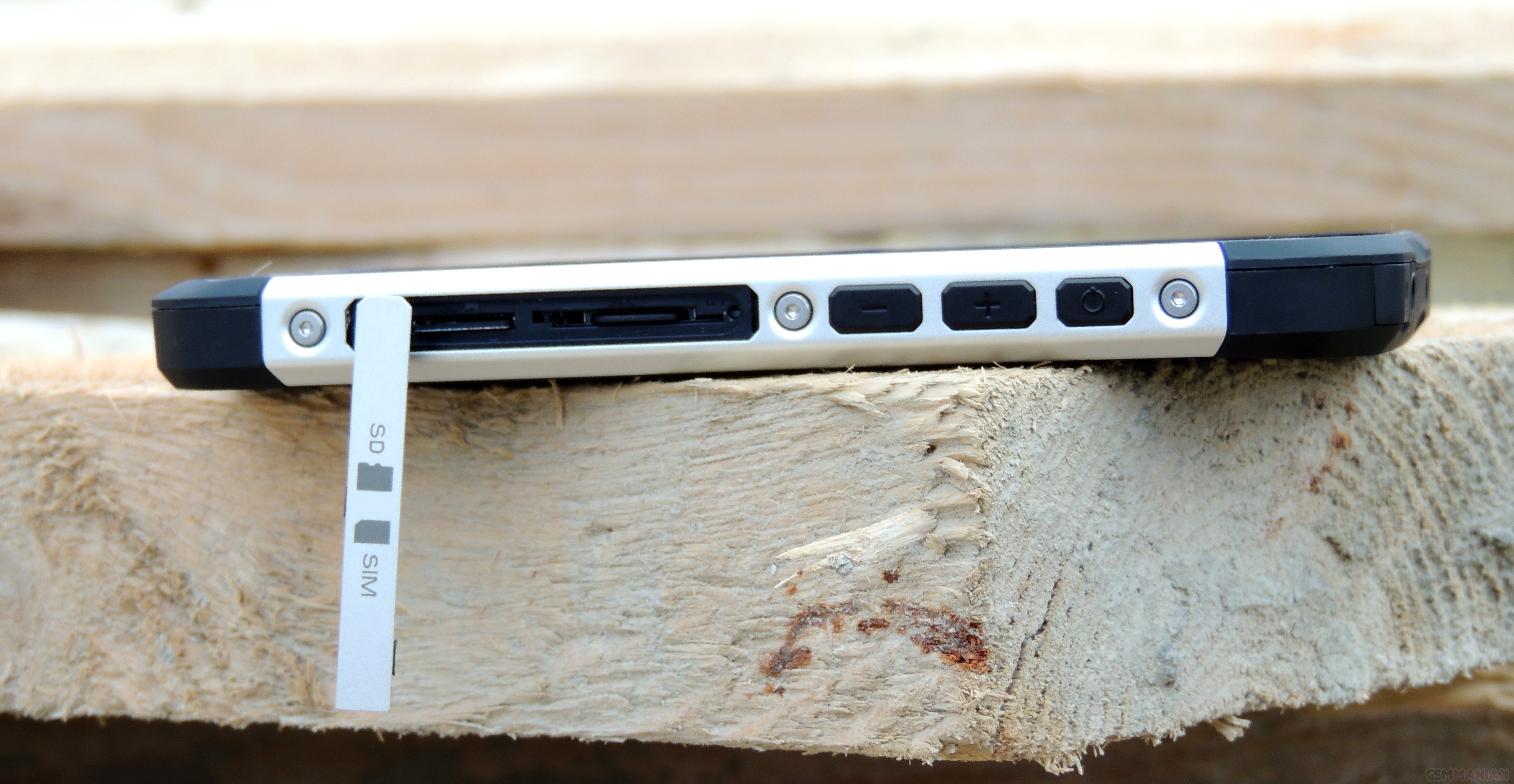 Boki telefonu tworzy mieszanka plastiku, gumy i aluminium. Na prawy bok przeniesiono trzy spore klawisze służące do regulacji głośności oraz wybudzania wyświetlacza. Umieszczono tu również niemałą zaślepkę z uszczelką, chroniącą gniazdo kart nanoSIM oraz microSD. Po przeciwnej stronie wbudowano jeszcze jeden klawisz, któremu możemy przypisać dowolnie wybraną przez nas funkcję, oraz gniazdo microUSB, także zabezpieczone zaślepką wraz z uszczelką.