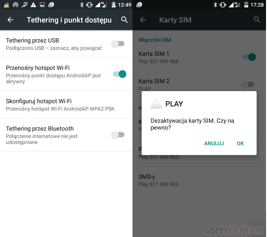2. Tak, można ręcznie wyłączyć jedną z kart sim, bez jej wyciągania.