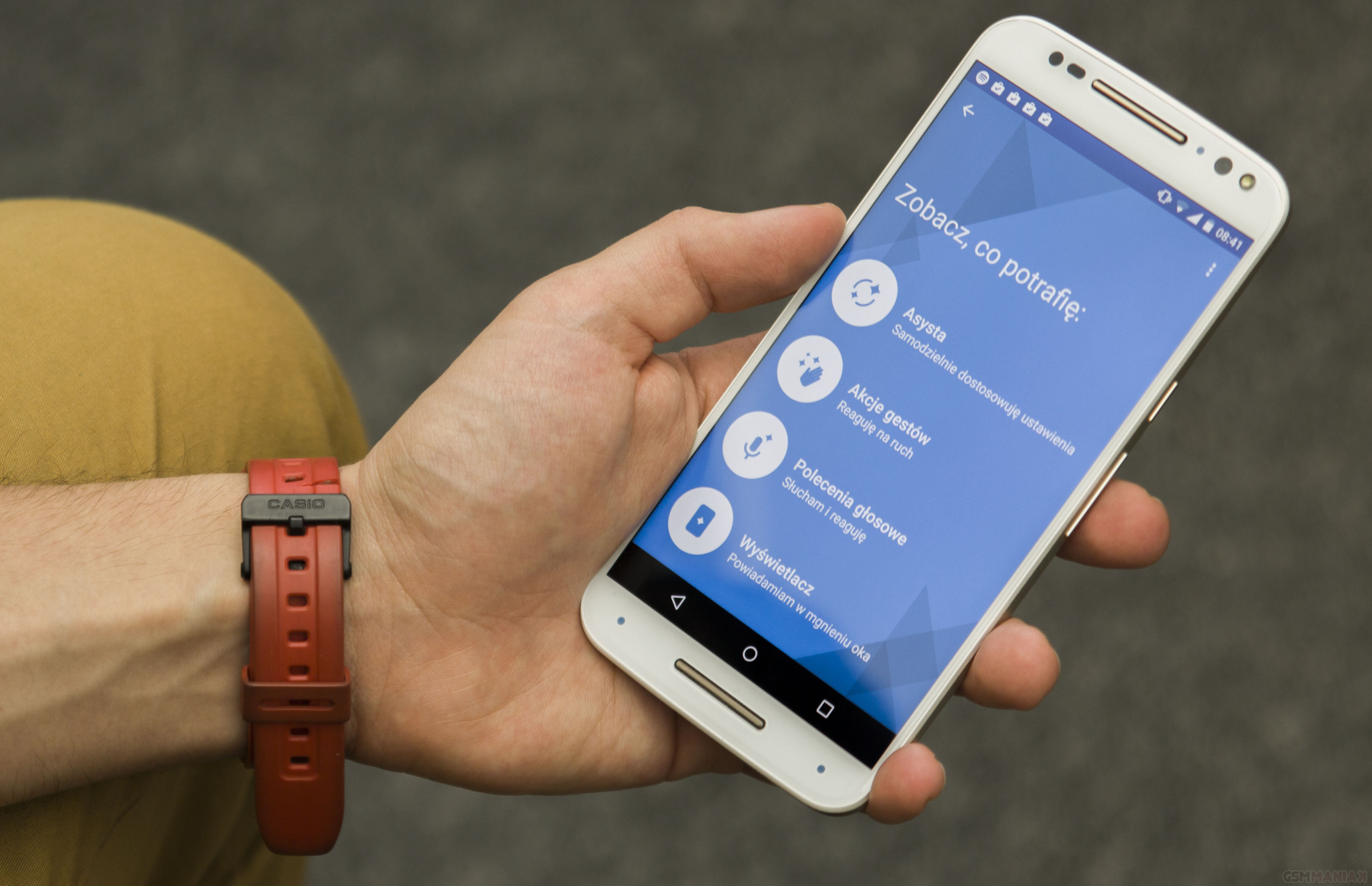 Jest też ekran Moto — podrzucający informacje o aktualnych zdarzeniach i powiadomieniach bez potrzeby aktywowania ekranu oraz funkcja Uważny ekran, która steruje podświetleniem ekranu w zależności od tego czy na niego patrzymy.