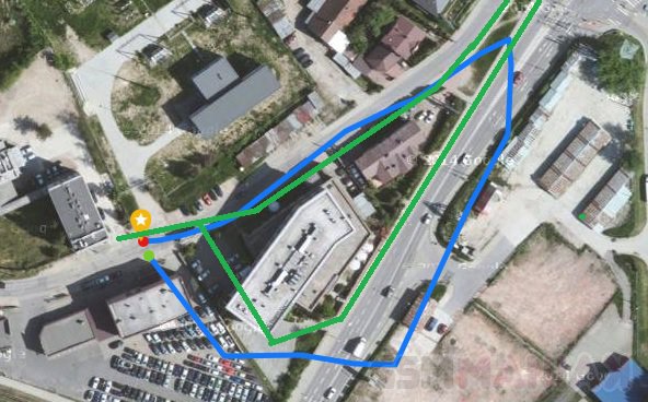 Moduł GPS (z obsługą A-GPS) znajduje sygnał szybko – z reguły w kilka sekund. Nie jest jednak precyzyjny, co doskonale pokazuje screen z naszego testu. Nie polecam używać go więc do nawigacji pieszej (chyba, że z wsparciem A-GPS), z samochodową powinien sobie poradzić.