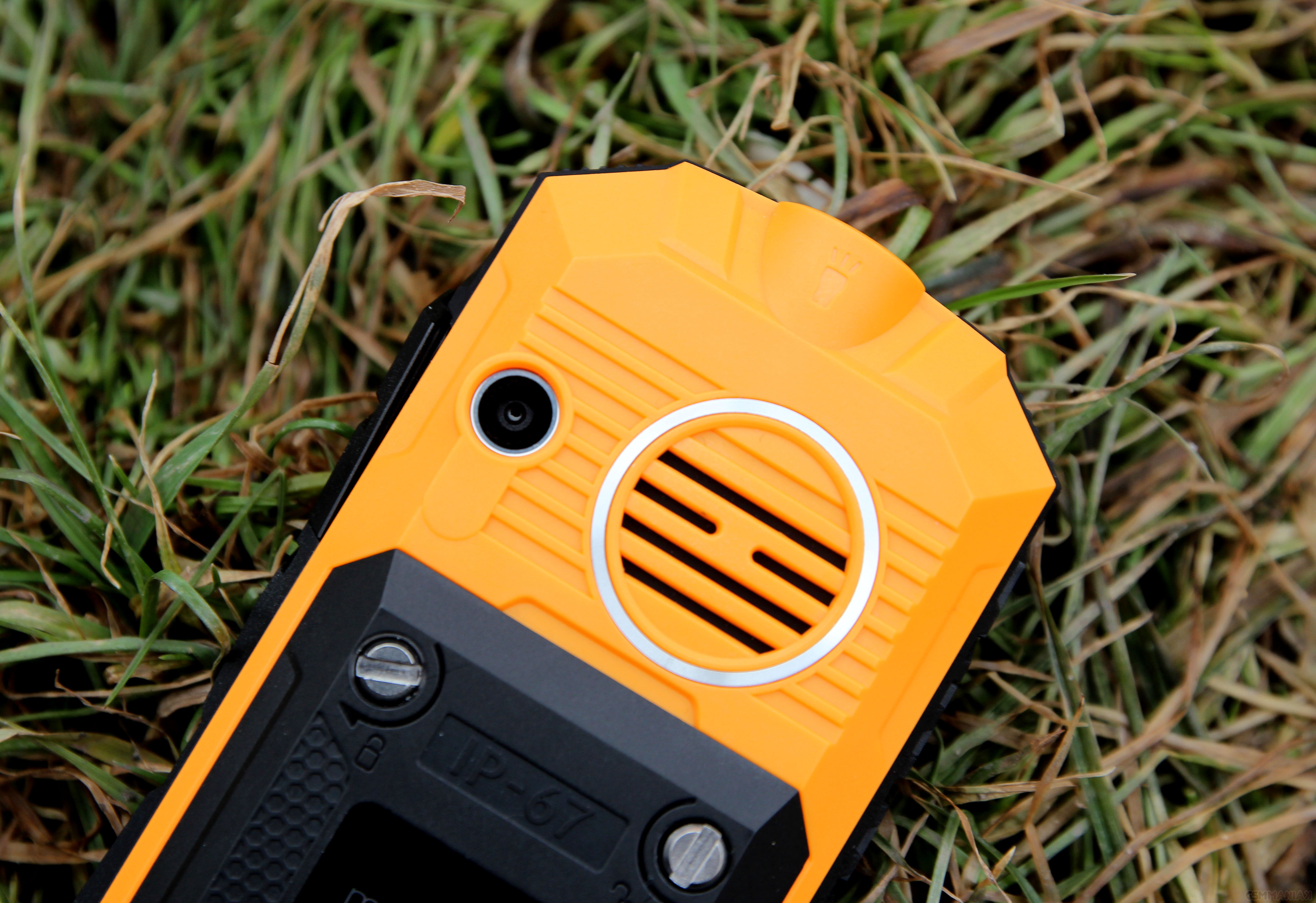 Jak wspomniałem wyżej, projektanci Hammera jako wartość priorytetową traktowali jego praktyczność. Jakie są tego efekty? Urządzenie świetnie leży w dłoni – jest smuklejsze niż pierwsza generacja, jednocześnie będąc przy tym znacznie wygodniejszym użyciu. Gumowe wstawki po bokach sprawiają że chwyt jest bardzo pewny, nawet w rękawicach roboczych. Pozostała część obudowy jest prawie w całości wykonana z tworzyw sztucznych. Gumą pokryto wszelkie newralgiczne punkty obudowy mogące mieć kontakt z podłożem przy upadku. Jedynymi pominiętymi miejscami są drobne wyżłobienie w okolicy obiektywu aparatu i latarki , które widocznie poszczerbiły się przy naszych próbach.