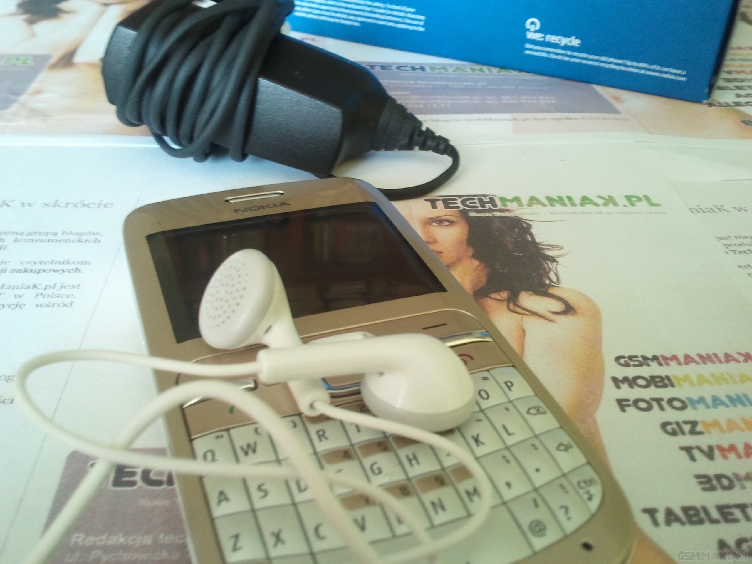 Poza telefonem w pudełku znalazłem jeszcze ładowarkę sieciową, całkiem ładnie wykonane i poprawnie grające słuchawki, kartę microSD o pojemności 2 GB oraz tak zwaną „makulaturę”, której większość z Was zapewne nie przeczyta 😉
