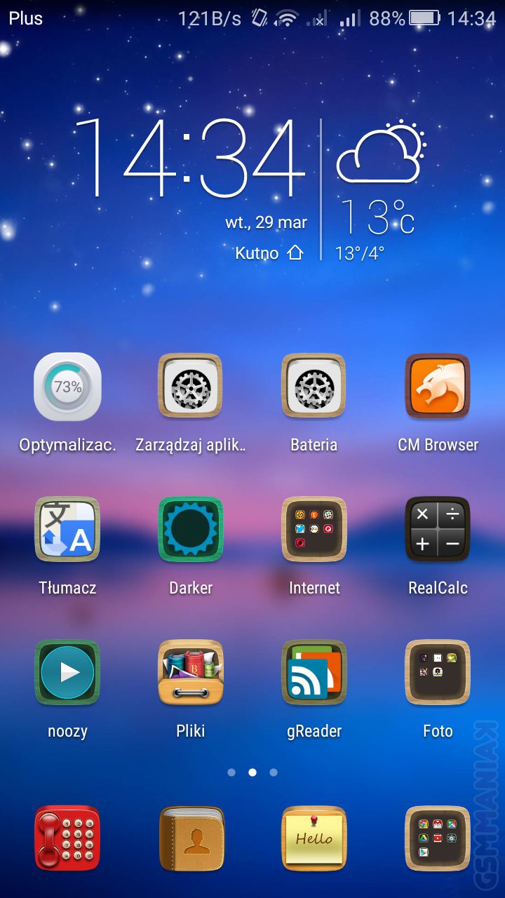Honor 4X to jeden z wielu phabletów na rynku, który pracuje pod kontrolą systemu Google Android (aktualnie w wersji 5.1 Lollipop). Jednak jak na produkt firmy Huawei Honor przystało, jest on przykryty nakładką systemową EMUI (aktualnie w wersji 3.1). Jedną z cech charakterystycznych dla tego oprogramowania jest brak listy aplikacji/app drawera, co szczerze mówiąc wzbudzało mój niepokój jeszcze przed zakupem, gdyż nie byłem ani przyzwyczajony, ani specjalnie przekonany do takiego rozwiązania. Z czasem odkryłem, że bez niego da się normalnie funkcjonować.