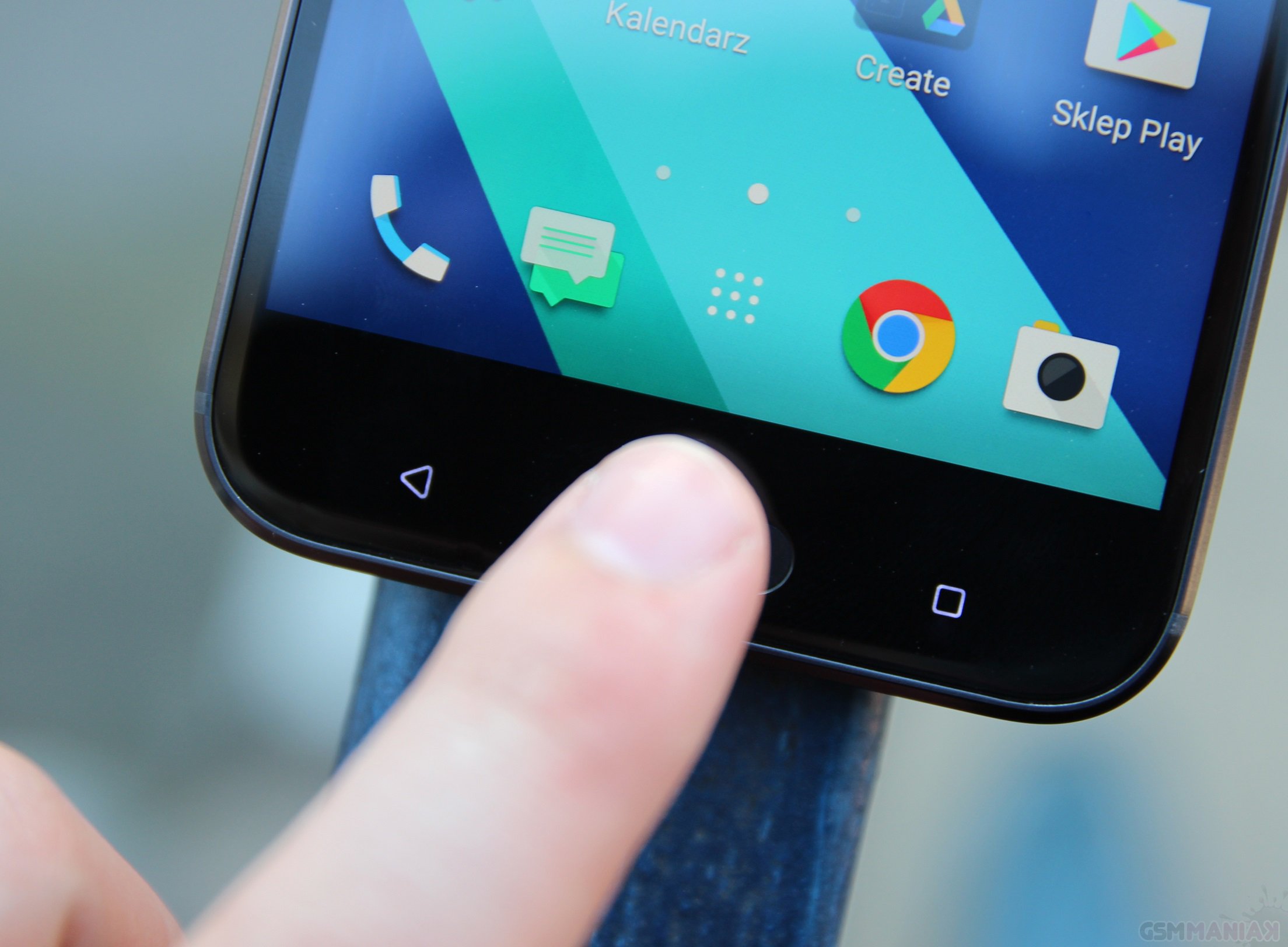 Tuż pod ekranem znajdziemy płytkę dotykową w której wbudowany jest czytnik linii papilarnych. Cechuje się ona bardzo szybkim czasem reakcji, wręcz ekspresowym. Od momentu przyłożenia właściwego palca, do odblokowania ekranu nie mija nawet sekunda, a skuteczność jest bliska stuprocentowej.