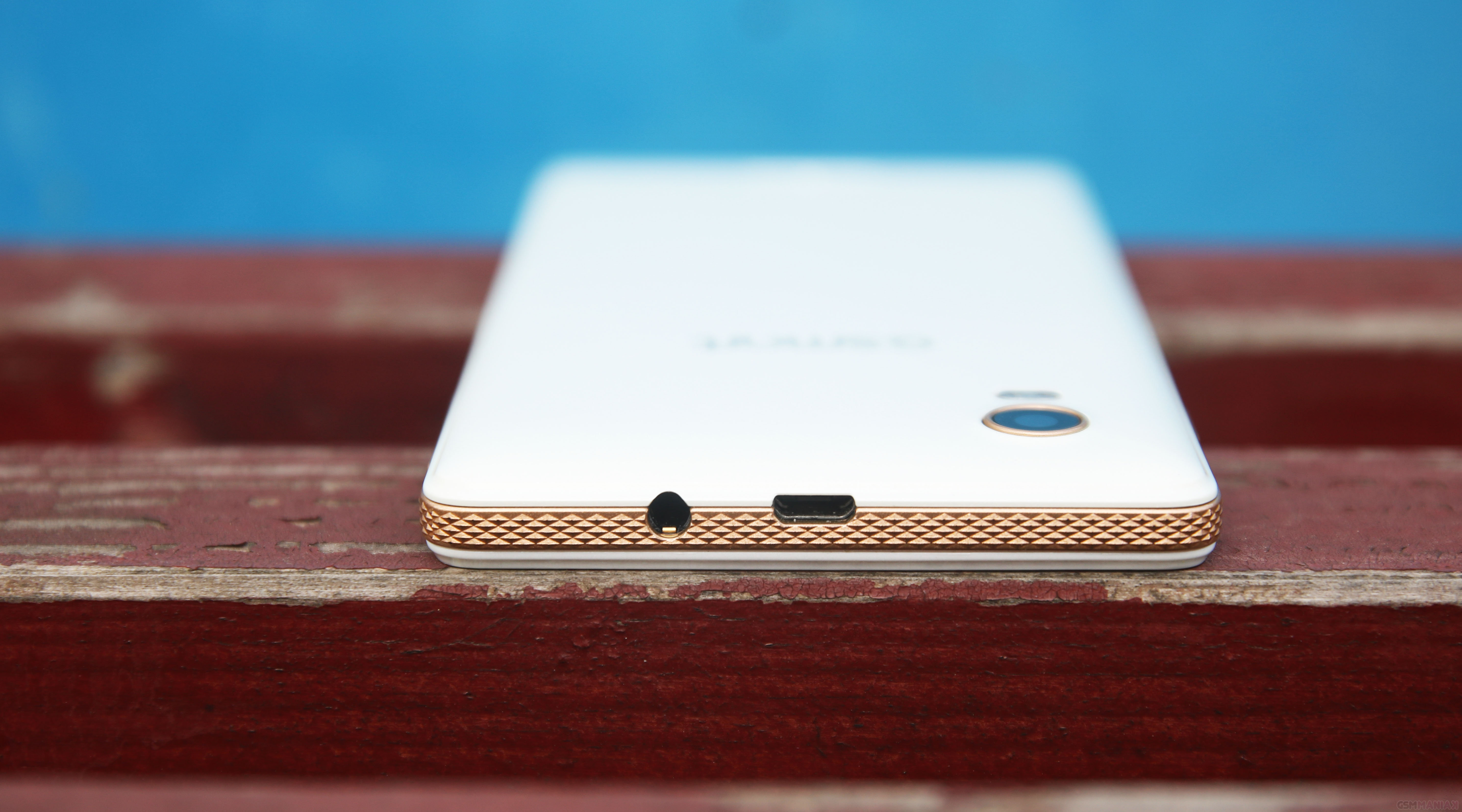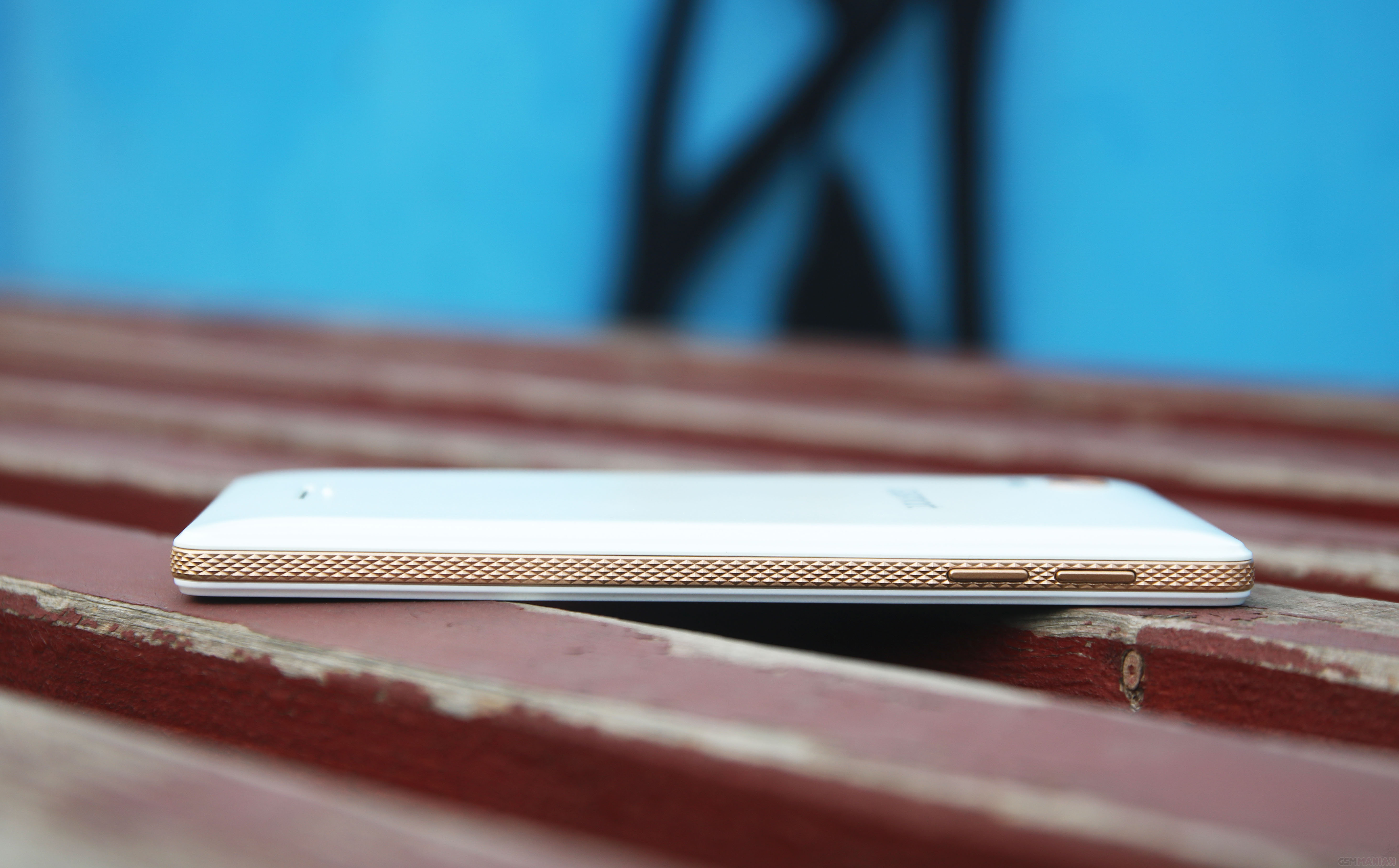 Wśród elementów dodatkowych znajdziemy oczywiście fizyczne klawisze do regulacji głośności, które zamontowano w górnej części lewego boku. Po przeciwnej stronie znajdziemy guzik zasilania. Wszystkie trzy posiadają wyraźnie zaznaczony skok i zostały mocno przytwierdzone do korpusu telefonu, więc nie grzechoczą podczas potrząsania urządzeniem. Pozostałe elementy — złącze audio oraz port microUSB znajdziemy na górnym boku telefonu.