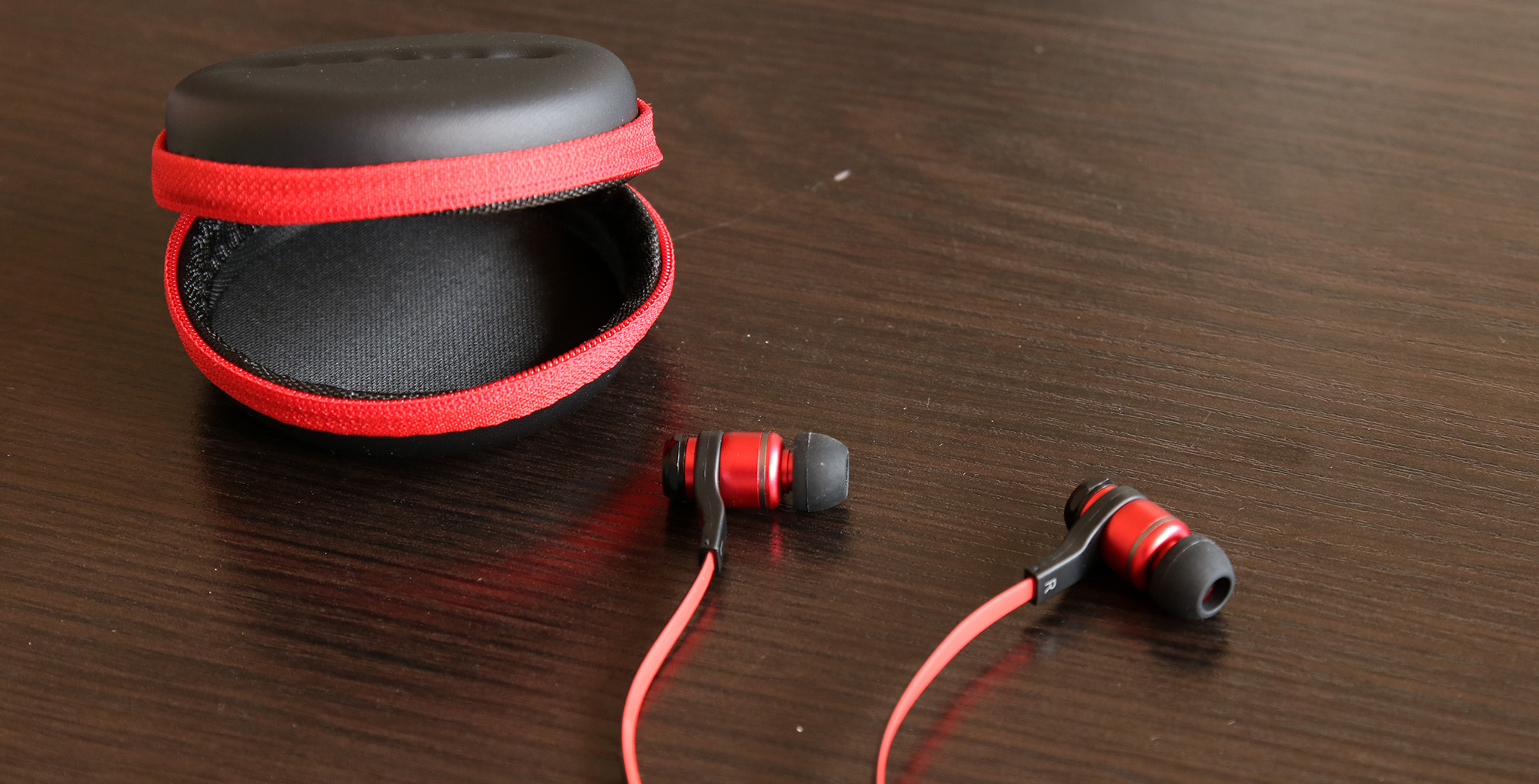 Słuchawki Ozone posiadają bardzo podobne wyposażenie: znajdziemy tu pokrowiec, 3 końcówki wzmacniające o rożnej charakterystyce oraz tyle samo typów silikonowych wkładek. W przeciwieństwie do Razera, słuchawki od Ozone od razu idealnie ułożyły się w moich uszach – zapewne dlatego, iż producent zdecydował się założyć gumki w rozmiarze medium. Całość słuchawek została wykonana z aluminium, które jest przyjemnie chłodne i odpowiednio ciężkie w dłoniach – osoby z mniejszymi uszami mogą jednak mieć problem z utrzymaniem słuchawek przez małżowinę, co zaowocuje ich wypadaniem – nie powinno się to stać, ale mimo wszystko może. Tak jak i w przypadku Razera mamy tutaj nieplączący się, czerwony płaski kabel oraz etui, które jest nieco miększe na górze, ale już po bokach konstrukcji chroni dostępu do słuchawek „na sztywno”.