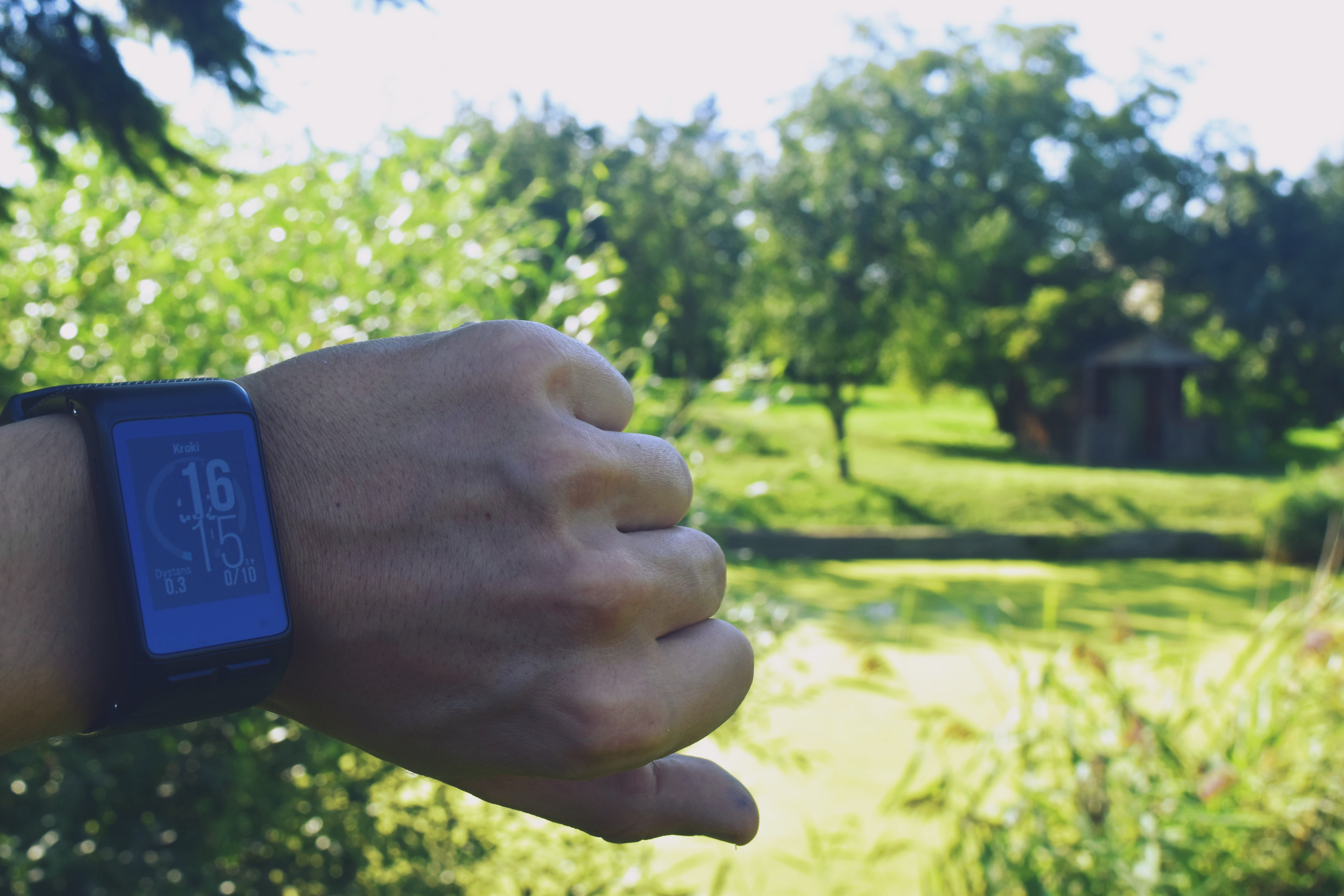 Zwróćcie uwagę na zdjęcia… Niestety, pierwszym, co rzuca się w oczy jest częstotliwość wieszania się czasomierza. Zegarek dość często się zacinał, prawdopodobnie są to problemy związane z softem lub po prostu osoba, która testowała zegarek przede mną uszkodziła go. Szukałem na ten temat informacji w sieci, jak się okazuje wielu użytkowników Vivoactive HR miało ten sam problem (niektórzy nawet wrzucają filmiki do sieci – oto przykład), co oznacza, że usterka może być fabryczna. Mimo to starałem się nie zniechęcić i z zaciśniętymi zębami oraz anielską cierpliwością rozpracowywałem ten gadżet.
