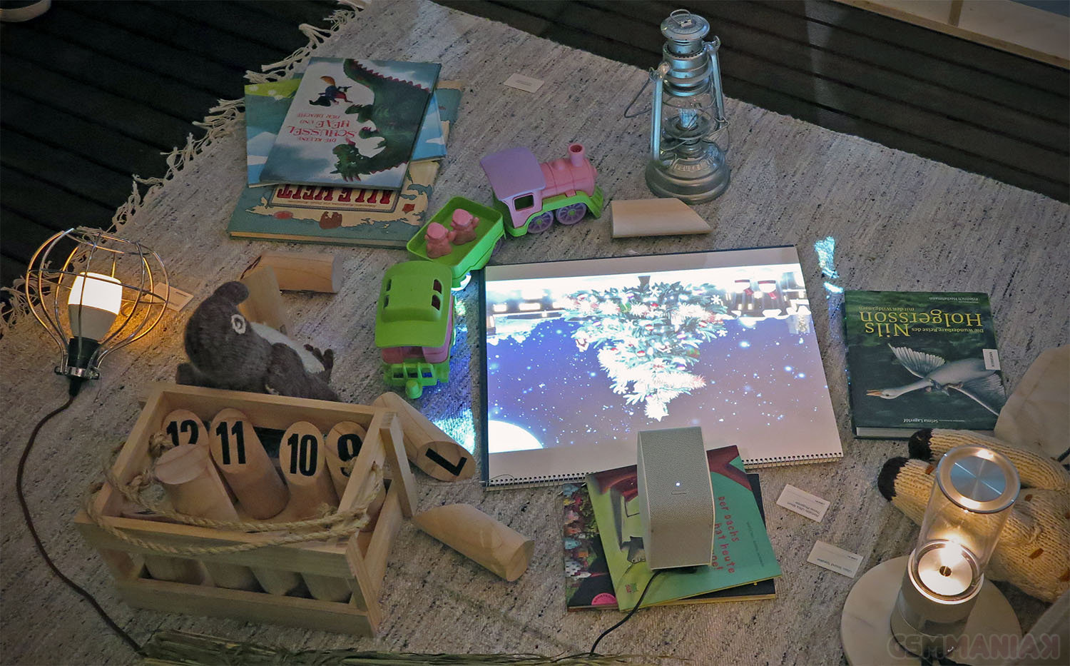 Na liście wartych uwagi nowości mam też bardzo fajny projektor Sony. Jego podstawowa zaleta to możliwość rzucania obrazu na ziemię lub tuż obok obudowy. Wyobraźcie sobie sytuację, że stawiacie taki sprzęt na biurku i puszczacie dziecku bajkę robiąc projekcję na kartce papieru rozłożonej na ziemi. Rewelacja, czyż nie? Ten konkretny model właśnie wchodzi do sprzedaży (cena to 1000 EUR), ale na targach pokazano także rozwinięty koncept kolejnego modelu, który do tego wszystkiego wspiera również… obsługę dotykiem.