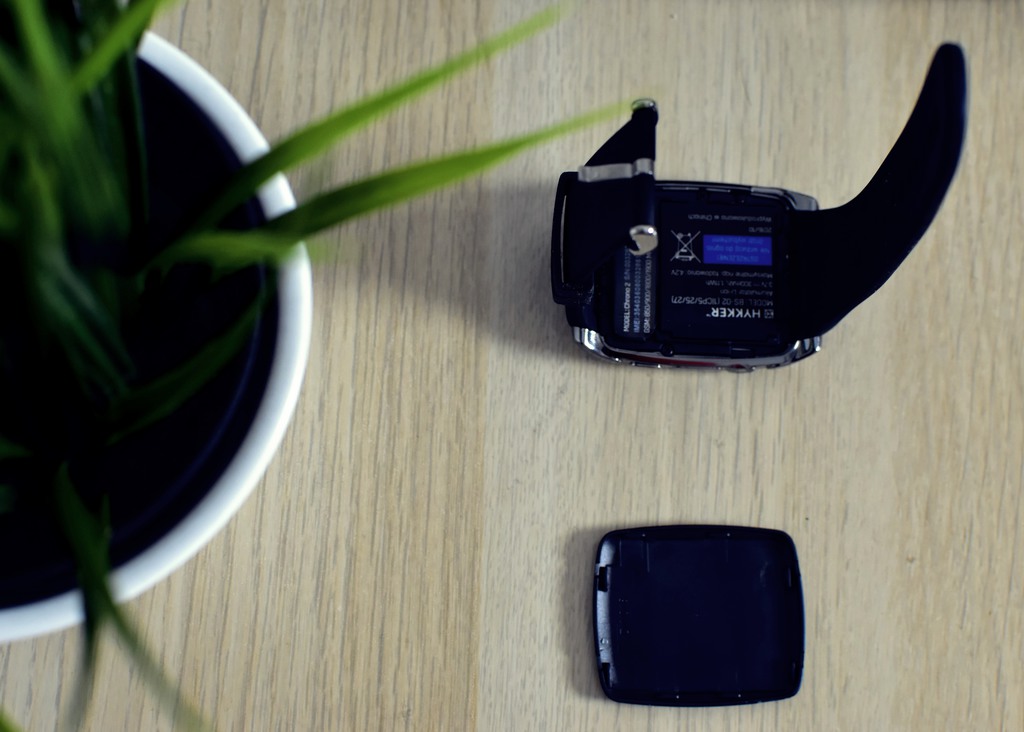 A skoro mowa już o wykonywaniu połączeń – z tyłu zegarka znajduje się pokrywa, pod którą skrywają się sloty na karty: SIM oraz MicroSD (do 32 GB). Jest też miejsce na akumulator, który przy pierwszym kontakcie ze smartwatchem trzeba zaaplikować własnoręcznie.