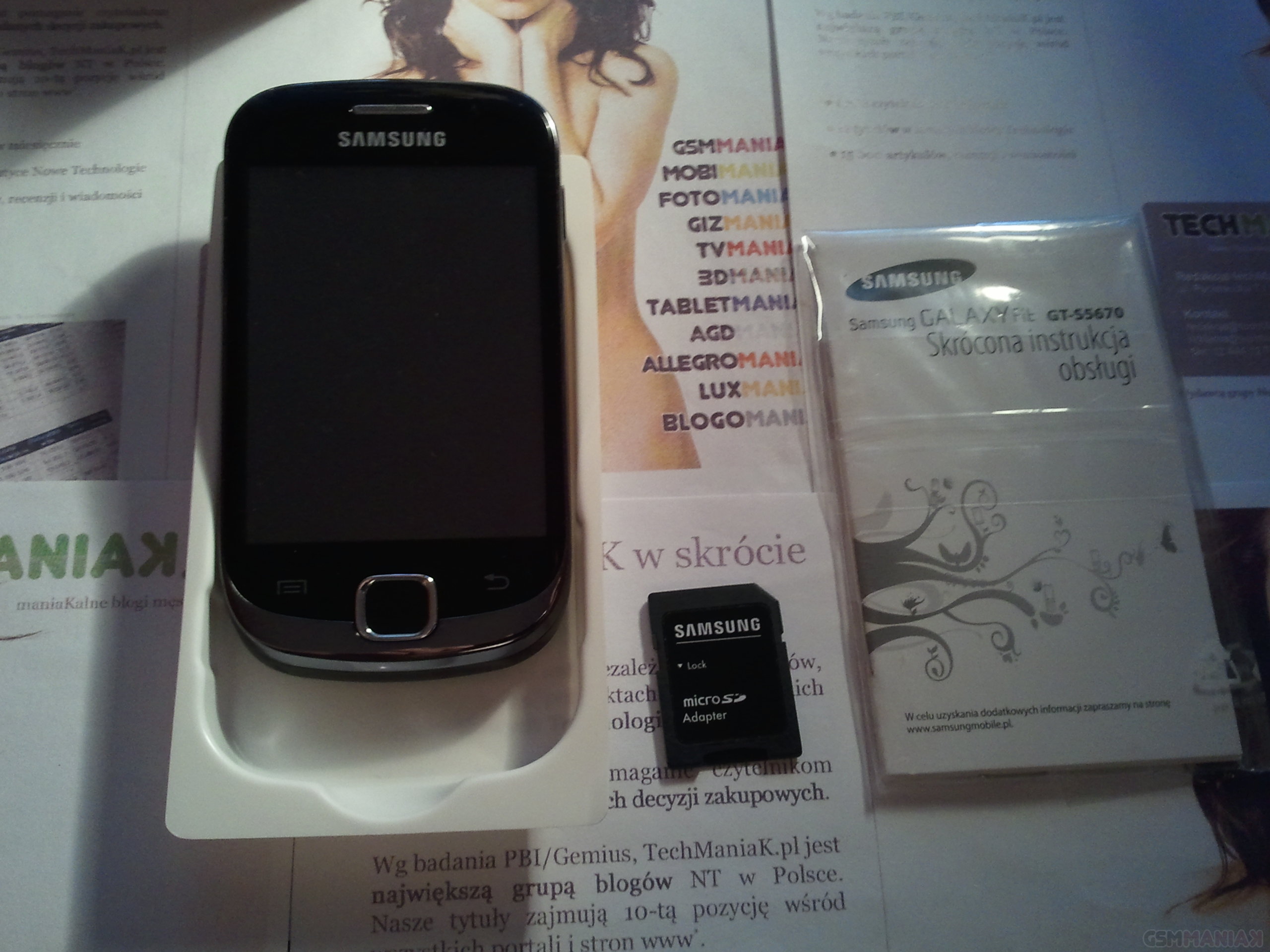 Pudełko nieźle komponuje się z hasłem reklamującym Galaxy Fit w Polsce: elegancja w pracy, szaleństwo po godzinach. Malutkie, poręczne, solidnie wykonane i jak zawsze w przypadku nowych telefonów Samsunga, posiadające niezłą stylistykę. Mój zestaw zawierał – poza telefonem – ładowarkę, adapter kart microSD oraz instrukcję obsługi. Kupując smartfona w sklepie, w opakowaniu znajdziecie jeszcze słuchawki – nasz redaKcyjny egzemplarz był ich pozbawiony, toteż musiałem posiłkować się swoim prywatnym „zestawem awaryjnym”.