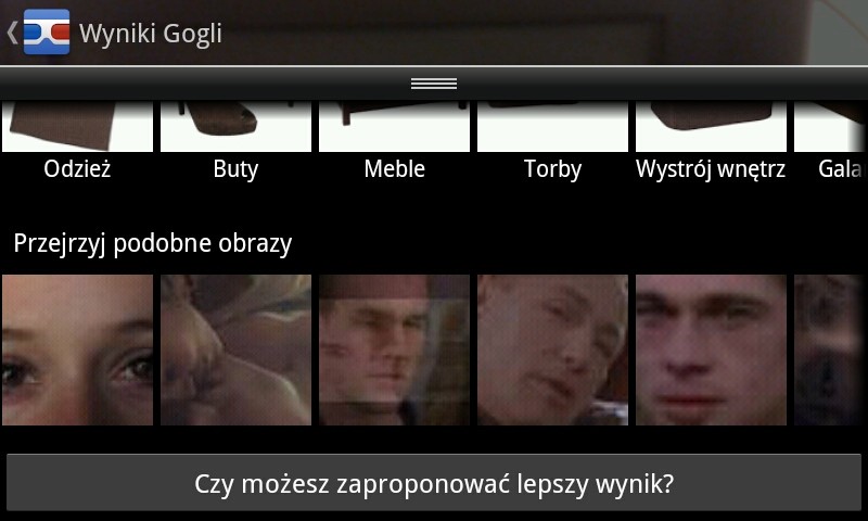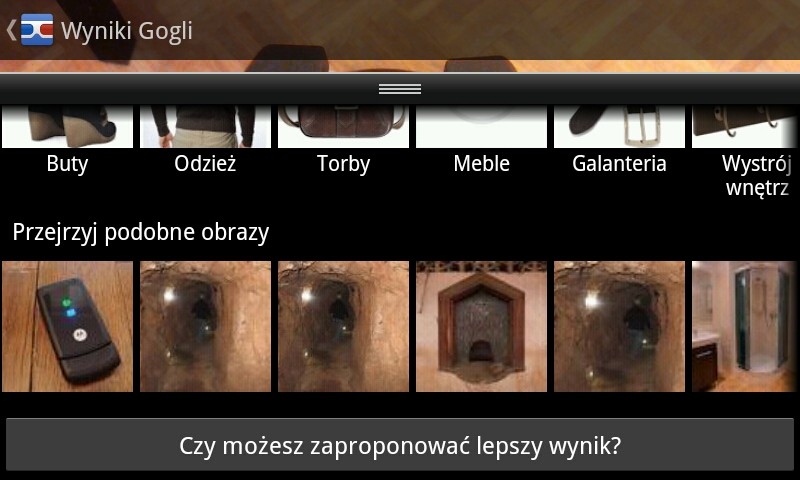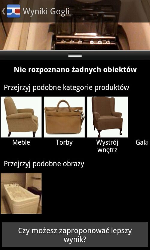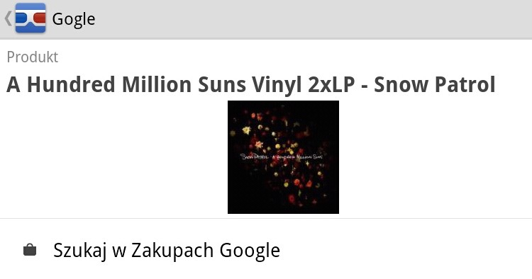 Jak dla mnie Gogle może i potrafi czytać, ale ma problemy ze znalezieniem właściwych informacji. A jeśli jakiegoś produktu nie ma w bazie Google (jest taka rzecz?:) to po co na siłę pokazywać podobne, zupełnie niezwiązane rzeczy? No nic, być może jakaś inna appka da mi lepsze rezultaty. Jednak nie będę jej wyszukiwał poprzez Google Goggle (Gogle).