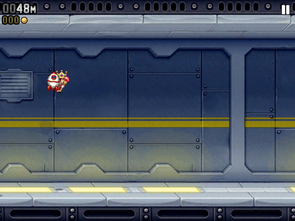 Dotarliśmy do sedna. Jeżeli poszukujecie naprawdę wciągającej gry, możecie przestać. Jetpack Joyride jest wyjątkowo nieskomplikowanym tytułem, jednak potrafi zaabsorbować uwagę gracza na długie godziny. Wszystko za sprawą fantastycznego mechanizmu rozgrywki. W zasadzie esencją tej gry jest plecak odrzutowy, który nasz protagonista przywdziewa w bliżej nieokreślonym laboratorium pełnym doktorków w skafandrach. Po kradzieży gadżetu musimy po prostu w nieskończoność omijać stojące nam na drodze pułapki zastawione przez wrednych ochroniarzy. To w zasadzie tyle.