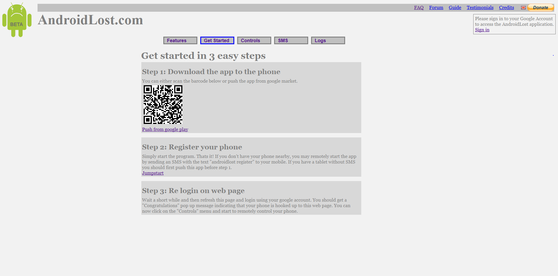 Czynimy to klikając w prawym górny rogu „Sign in”, podajemy swój e-mail, hasło, logujemy się i już możemy się czuć jak bohaterowie „CSI New Droid”. Strona jest niezmiernie minimalistyczna, ale dzięki temu szalenie czytelna i przejrzysta. Zresztą nie chodzi tutaj o wygląd i wodotryski, ale o niezawodność i jak najszybsze odzyskanie naszego zaginionego.