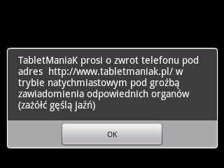 Jeśli złolazca nigdy nie zamierza wyłączać telefonu choćby przez rozładowanie (poza zmianą karty SIM), możemy być bardziej upierdliwi i zdefiniować wiadomość jaka pojawi się po każdym odblokowaniu ekranu, co na pewno nie będzie powodem do radości. To wiadomość niczym „Ta kopia systemu nie jest oryginalna”