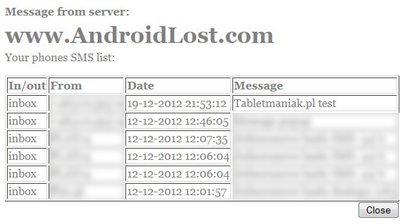 Myślę sobie więc, aby sprawdzić „androidlost apn copy” i się rozczarowuje: Komenda została przesłana w formie SMS-a: