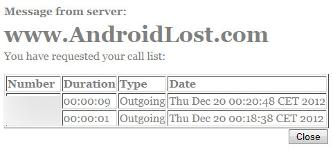 Android Lost umożliwia nam nagranie do 1 godziny odgłosów jakie mają miejsce wokół naszej zguby. Może nam to powiedzieć gdzie telefon się znajduje lub kim może być złolazca. Do wyboru mamy pliki o długości 10, 20, 30 sekund, 1, 2, 5, 10 minut oraz pół godziny i godzinę.