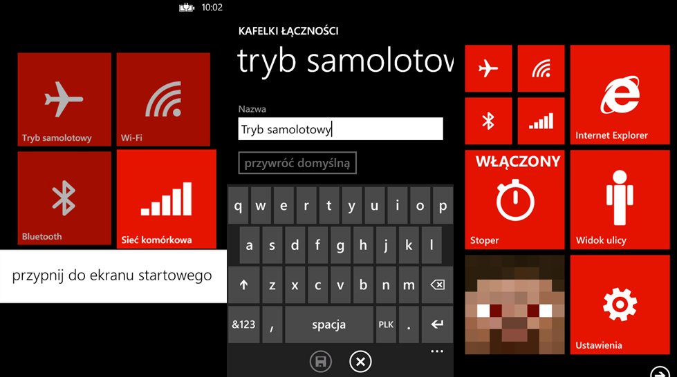 Używając Androida bardzo lubiłem możliwość dodawania widżetów. Dzięki temu bardzo prosto mogłem chociażby włączać Wi-fi czy Bluetooth. W Windows Phone nie jest już tak łatwo, ale z pomocą przychodzi aplikacja Kafelki łączności. Pozwala ona dodać na ekran startowy kafelek bezpośrednio prowadzący do ustawień Wi-fi, trybu samolotowego, sieci komórkowej czy też bluetootha. Nie jest to tak komfortowe rozwiązanie jak w Androidzie, ale bardzo ułatwia sprawną pracę na telefonach z Windows Phone. Również warto ją zainstalować ponieważ często zaoszczędzi nie tylko czas, ale i nasze nerwy.