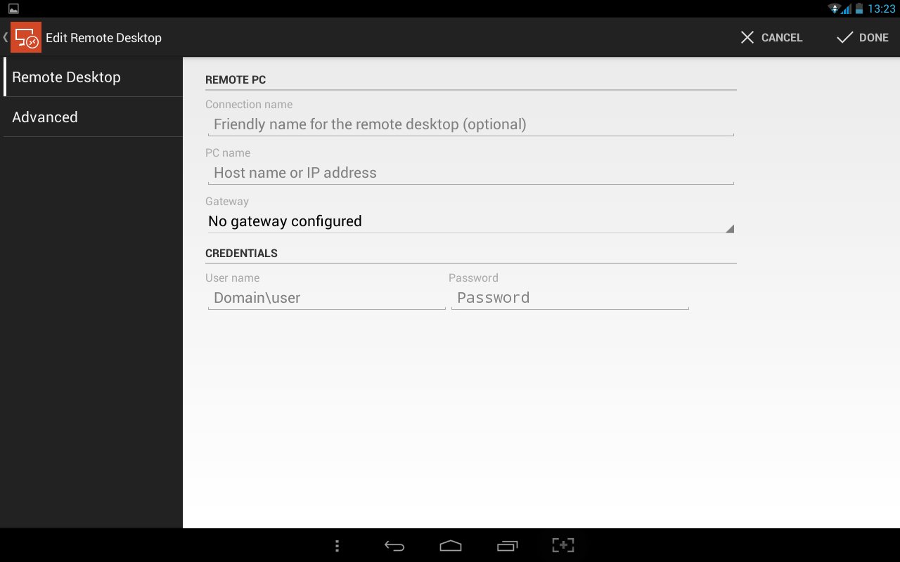 Następnie, już z poziomu aplikacji, w sekcji Remote Desktops klikamy na ikonkę plusa – pojawi nam się następujące okno.