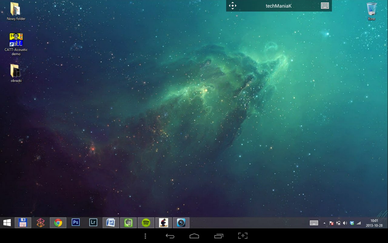 Dotykowej obsługi programu przed połączeniem opisywać raczej nie trzeba, przybliżyć można za to obsługę po zalogowaniu się do komputera. U góry aplikacji pojawia się pasek z nazwą komputera – możemy go dowolnie przesuwać po górnej krawędzi ekranu, zależnie od tego, jak nam wygodniej.