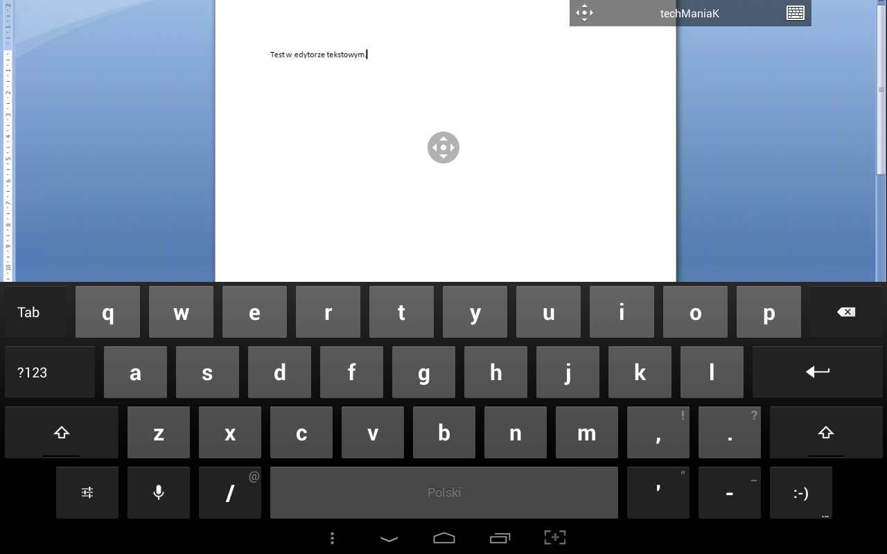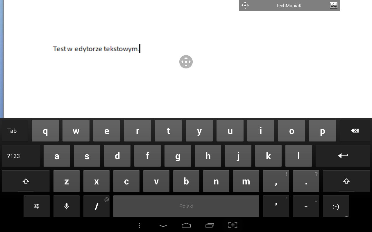 Z jego lewej strony znajduje się przycisk powiększenia – mamy niestety do wyboru tylko dwa rozmiary okna, nie możemy obrazu dowolnie przybliżać i oddalać. Z prawej strony jest przycisk klawiatury – pokazuje on naszą natywną klawiaturę z Androida, która służy tutaj oczywiście do wprowadzania tekstu.