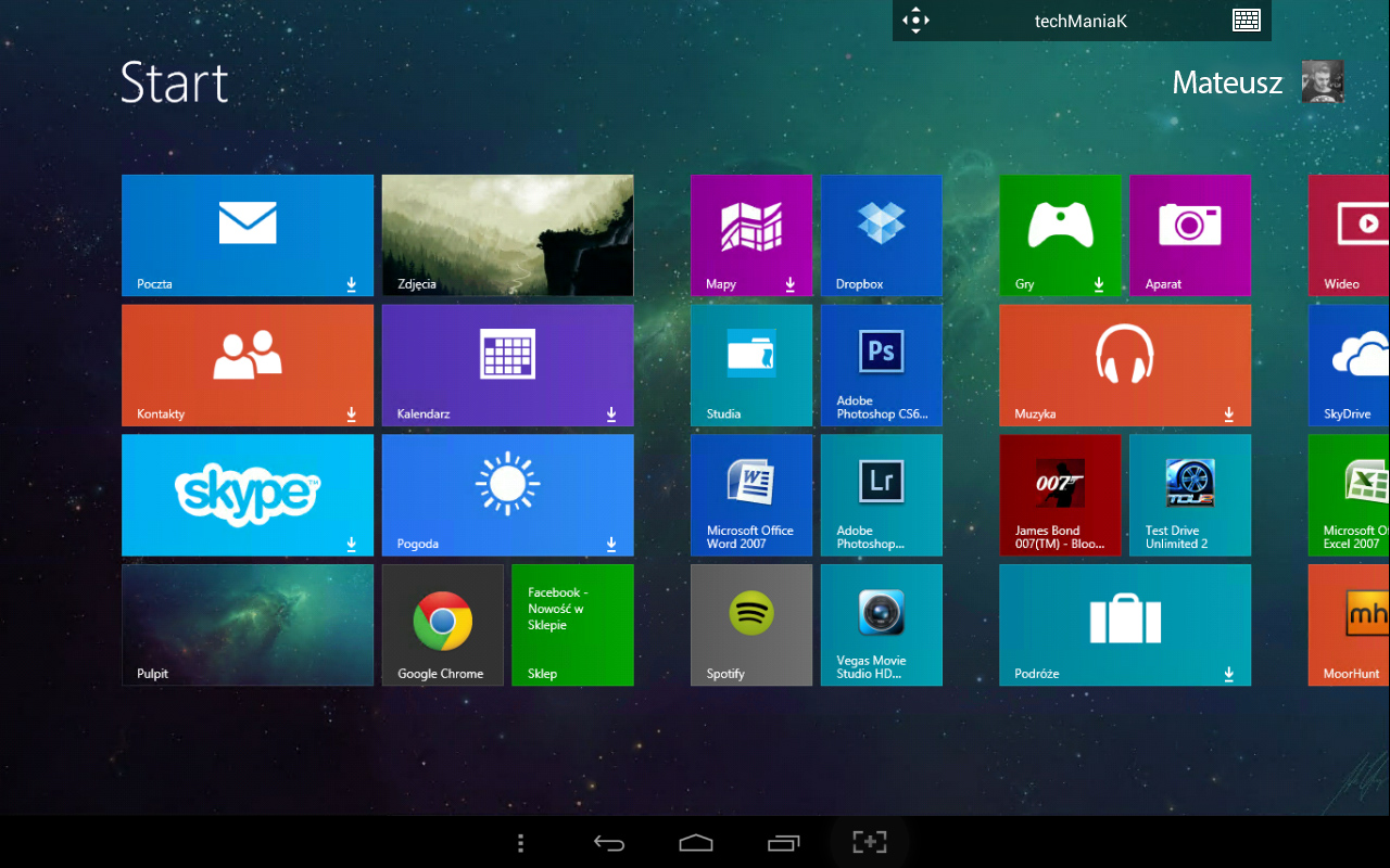 Obiekcje co do płynności działania postanowiłem sprawdzić dla pewności na kilku innych urządzeniach. Wyniki obserwacji potwierdziły się – o ile co do pracy aplikacji na pulpicie nie mogę się przyczepić, ba można nawet z powodzeniem napisać dłuższy tekst w Wordzie, to animacje w Menu Start pozostawiają sporo do życzenia.