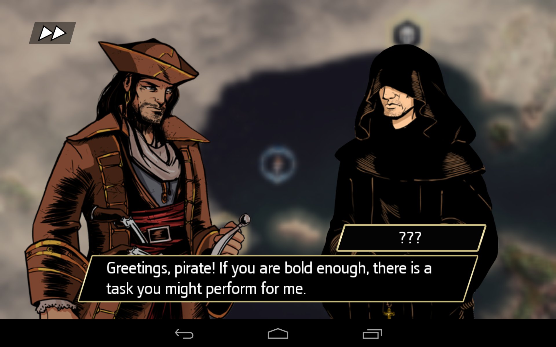 W mobilnej wersji również przyjdzie wcielić nam się w pirata z Karaibów w czasach tzw. Złotej Ery Piratów, w XVII wieku. To jednak całkiem inna postać, niż Edward Kenway z „większej” wersji. Do gry wejdziemy kiedy pirat imieniem La Buse napada na statek, w którym więziony jest nasz bohater – Alonzo Batilla. La Buse daje szansę załodze statku – oszczędzi ich, jeśli do niego dołączą. Kapitan zaatakowanego statku proponuje w zamian nic nie wartych więźniów, którzy widzą szansę na wolność. Alonzo raczej nie przebiera w słowach, ale podoba się to piratowi – dostajemy własny, nieduży statek i rozkładamy żagle.