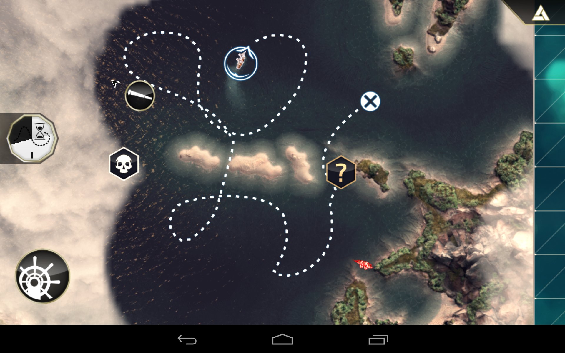 Jesteśmy kapitanem statku, trudno więc, żebyśmy szorowali pokład. Przyciskami wydajemy rozkazy załodze, a dokładniej każemy im rozwijać lub zwijać żagle i strzelać w odpowiednich momentach. Sami zaś stoimy, jak zwykło się mawiać, za sterami. Przesuwając palcem w dolnej połowie ekranu kręcimy kołem sterowym, przesuwając szybciej i puszczając możemy zakręcić nim nawet jak prawdziwy wilk morski, łapiąc dotknięciem wtedy, kiedy będzie potrzeba.