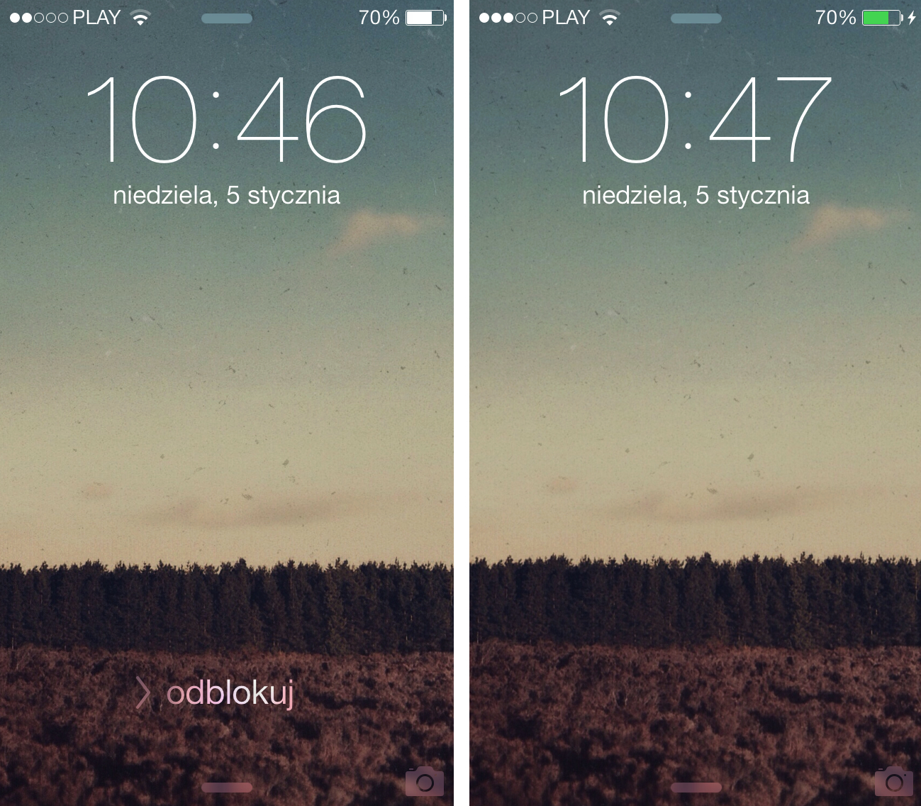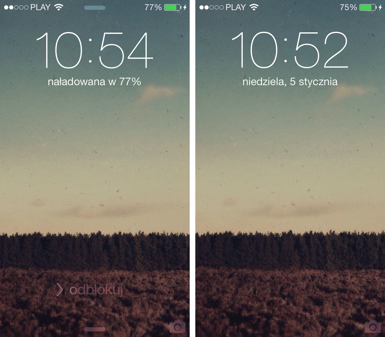 Ekran blokady na iOS 7 jest bardzo minimalistyczny i elegancki, ale ktoś stwierdził, że dobrze będzie go oczyścić z niepotrzebnych elementów i tak powstała aplikacja Simplock. Jak można zauważyć powyżej, jej zadaniem jest usunięcie napisu odblokuj z dolnej części lock screena. Oczywiście mimo braku widoczności tego napisu jego funkcjonalność pozostaje nienaruszona.