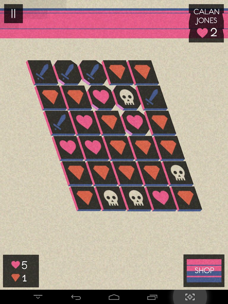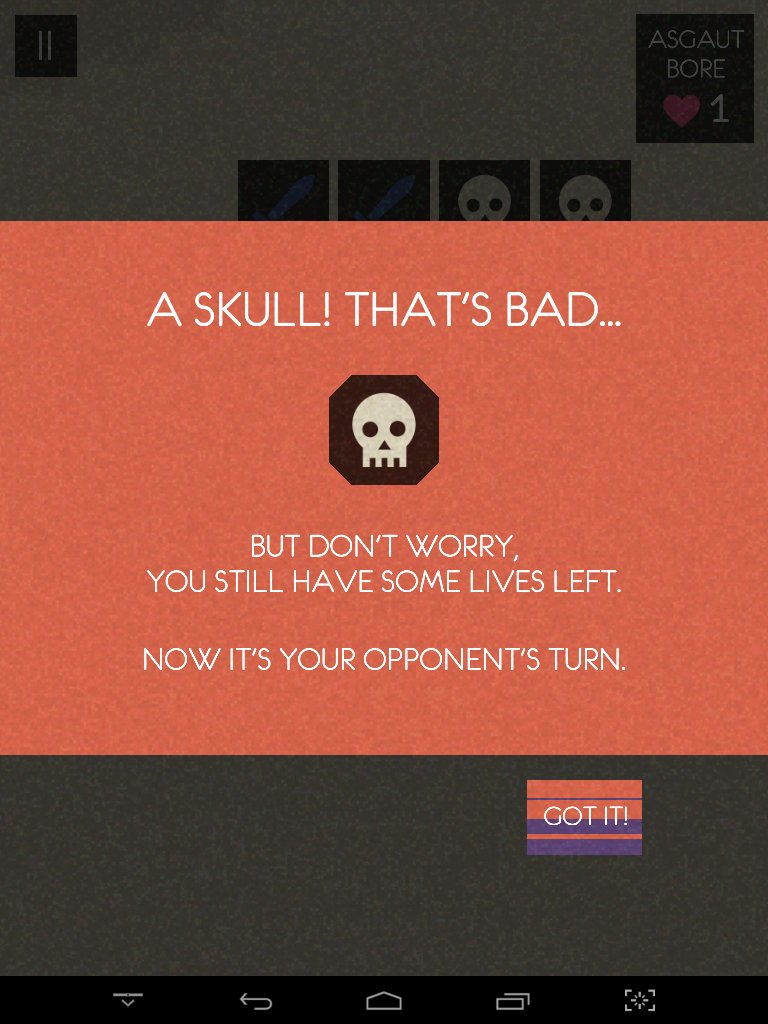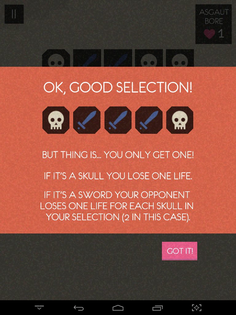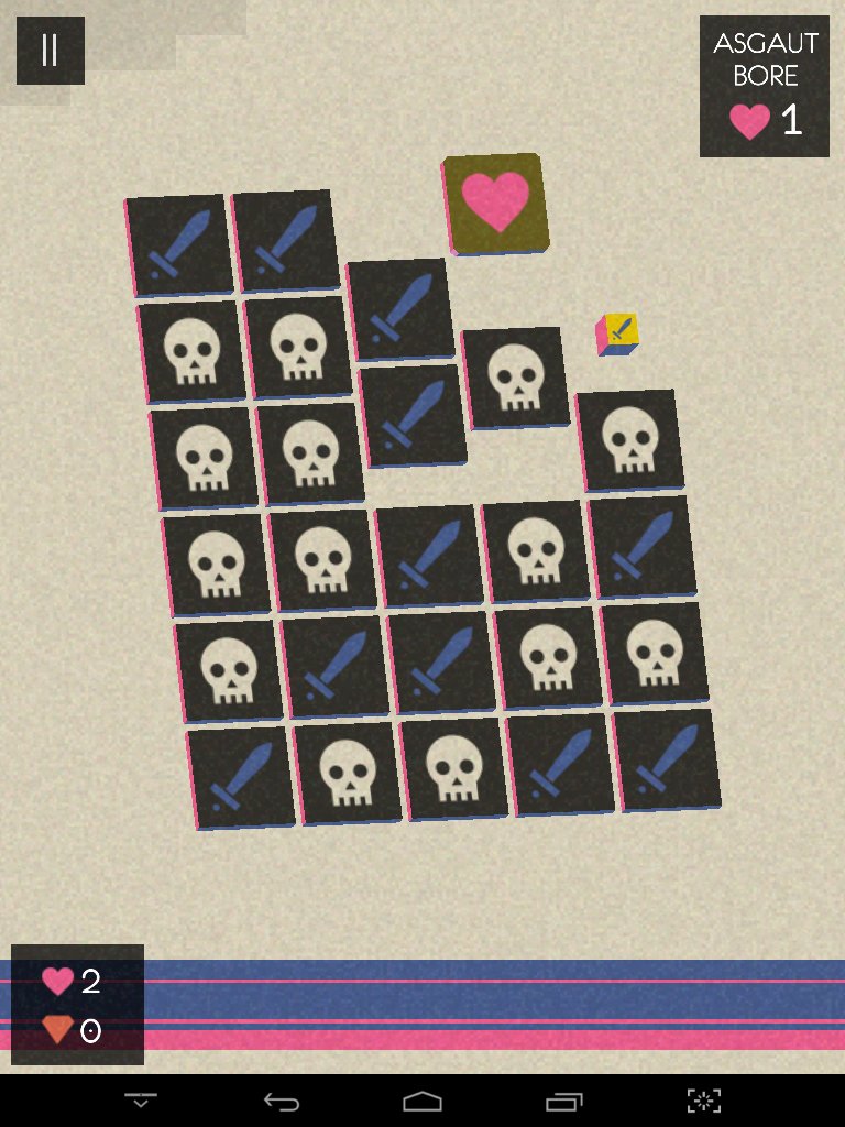 Są serca, dodające nam +1 do punktów życia, są czaszki, które te punkty odejmują. Są też miecze atakujące przeciwnika z siłą równą ilościom zaznaczonych w danym pasmie kościotrupów.