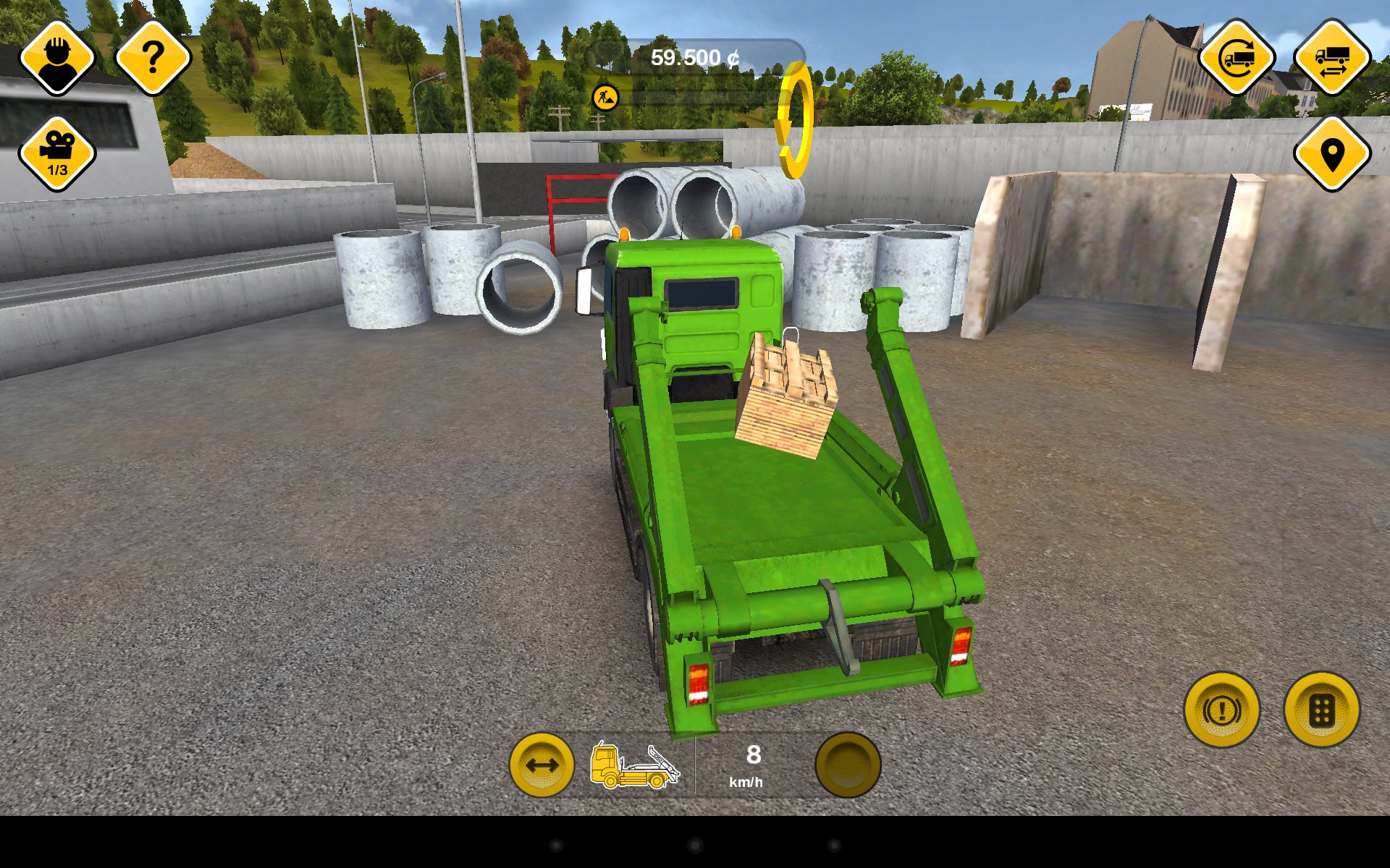 Nie na każde zlecenie musimy dojeżdżać samemu – podróż na drugi koniec miasta wózkiem widłowym lub koparką, które maksymalnie wyciągają jakieś 7 km/h, to prawdziwa katorga. Z pomocą przychodzi mapa, za pomocą której możemy dostarczyć pojazd we wskazane miejsce – koszty różnią się w zależności od maszyny, ale nie jest to też majątek: taka przyjemność wyniesie około 200-500 kredytów, choć w przypadku większych maszyn podejrzewam, że kosztuje to więcej.