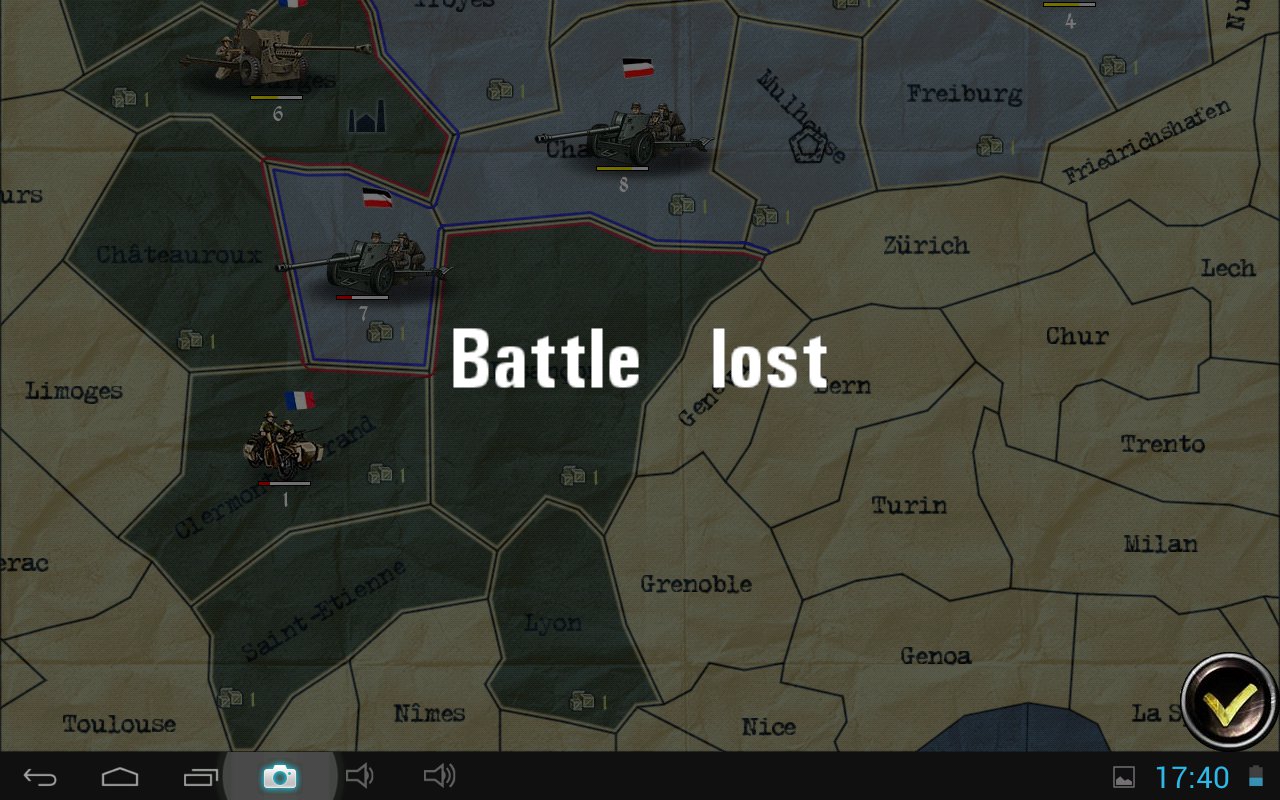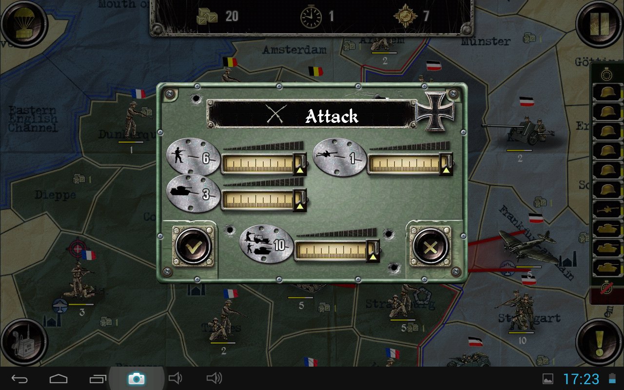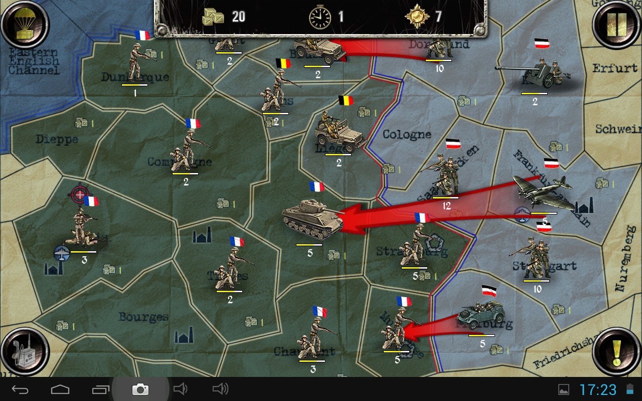 System walki jest intuicyjny i sprawdza się znakomicie. Kiedy tapniemy opuszkiem palca na konkretną dywizję bojową, w zależności od jej charakteru (wojska zmechanizowane to co innego niż samoloty bojowe) oczom naszym ukaże się kilka opcji. Z reguły jest to podróż o jedno pole w przypadku jednostek naziemnych (wojska powietrzne mogą poruszać się znacznie dalej, ale tylko po terytorium kontrolowanym przez nas) i atak na przeciwnika. Podczas batalii z adwersarzem ważne jest to, aby liczba pojazdów zmechanizowanych górowała nad piechotą, ponieważ to właśnie czołgi i armaty robią różnicę.