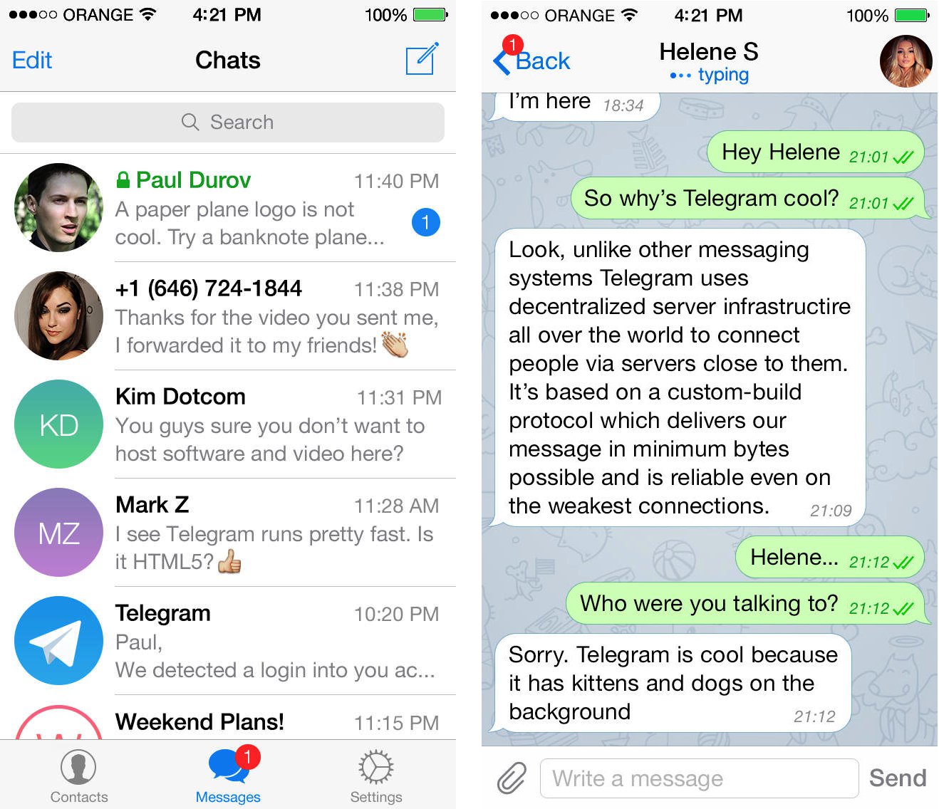 Co takiego oferuje Telegram, że warto się w niego zapatrzeć? Przede wszystkim jest dostępny dla wielu systemów: oficjalnie dla Androida i iOS-a oraz nieoficjalnie dla Windows Phone’a, Windowsa, OS X czy Linuksa. Autorzy aplikacji zapewniają, że dzięki zaawansowanemu szyfrowaniu end-to-end nie ma mowy, aby ktoś odczytał nasze wiadomości, zwłaszcza, że wiadomości przesyłane są z wykorzystaniem chmury. Ponadto w Telegramie skorzystamy z takich funkcji jak chociażby czaty grupowe (do 100 osób) czy podzielimy się ze znajomymi różnymi multimediami (w tym wideo o maksymalnej wielkości 1 GB). A na dokładkę dodam, że aplikacja jest znacznie szybsza i ładniejsza niż poczciwy WhatsApp.