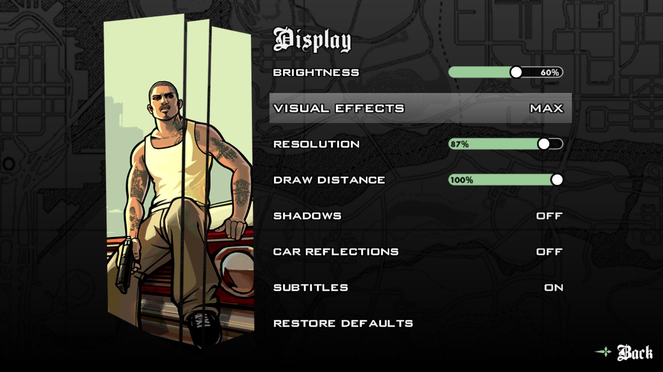 Przede wszystkim musicie wiedzieć, że 4-rdzeniowy procesor o taktowaniu 1,3 GHz z możliwością przyśpieszenia do 1,8 oraz 2 GB pamięci operacyjnej RAM wyraźnie się „pocą” podczas próby wygenerowania najbardziej szczegółowych efektów graficznych. To zaskakujące, ale po ustawieniu najwyższego stopnia zaawansowania graficznego GTA: San Andreas było produkcją niegrywalna. Dopiero wybranie najniższych detali skutkowała zwiększeniem liczby klatek na sekundę, chociaż i tak momentami występowały wyraźne spadki płynności.