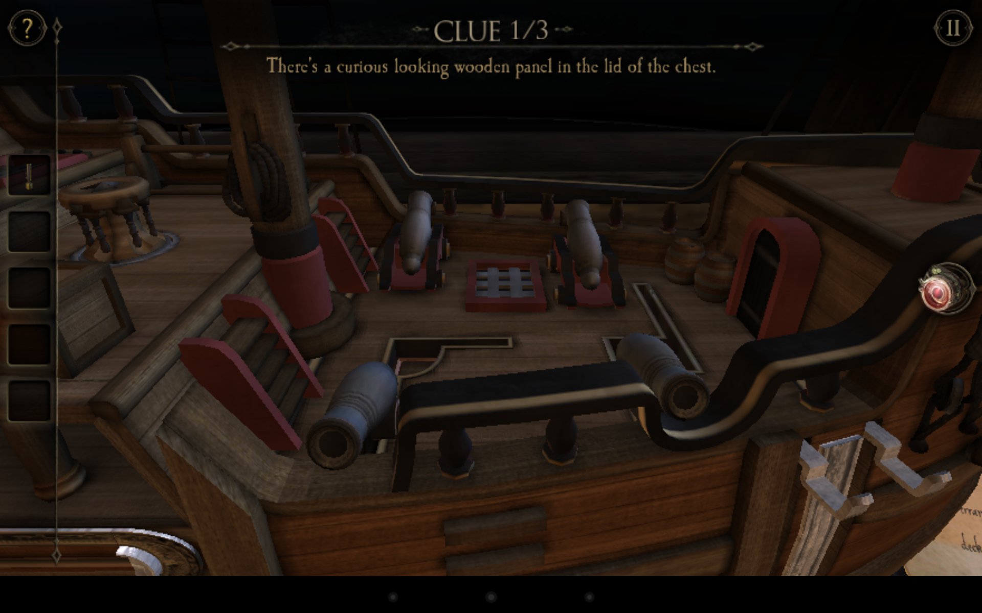 Choć poziom zagadek jest odpowiedni, to jednak radziłbym wyłączyć podpowiedzi. Pojawiają się trochę zbyt szybko, a aktywuje je zwyczajny brak interakcji przez dłuższy czas. Do każdej zagadki dostajemy po kolei kilka podpowiedzi – od mniej oczywistych, do wręcz jasnego powiedzenia „spójrz na to, dotknij tego, ustaw tak i tak”. Jeśli faktycznie nie jesteśmy w stanie czegoś wymyślić mogą okazać się przydatne, ale trochę psują grę – większą satysfakcję osiąga się po samodzielnym rozwiązaniu problemu. Oczywiście można zostawić je włączone i nie zwracać uwagi na pojawiający się w prawym górnym rogu pytajnik, ale wierzcie mi – ciężko się mu oprzeć.