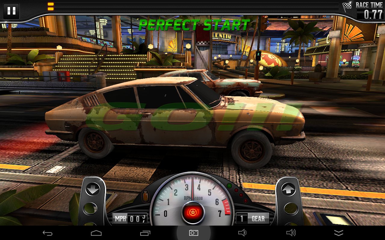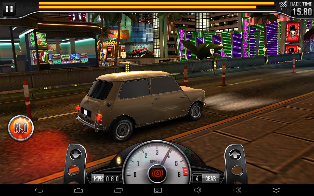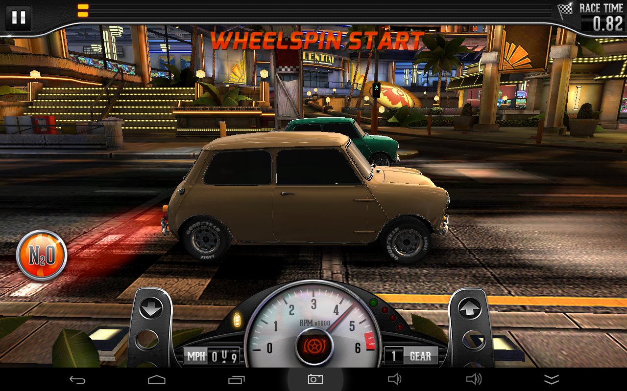 Jak dokładnie wygląda wyścig? Na starcie musimy utrzymać gaz w zakresie optymalnych obrotów. Sygnalizuje to zielona lampka nad obrotomierzem, a jaką technikę wybierzemy do tego to już nasza własna sprawa – można próbować rytmicznych tapnięć, ale można i trzymać gaz aż do odpowiedniego momentu. Dalej, przyspieszamy zmieniając po drodze biegi, najlepiej również wtedy gdy świeci się zielona lampka, choć nie zawsze wskazania są poprawne – trzeba jeszcze zwrócić uwagę na przyczepność kół. Jeśli mamy w samochodzie zainstalowane nitro – wciskamy przycisk i korzystamy z dodatkowej mocy. Po przesiadce do innego samochodu trzeba będzie skorygować nawyki, podobnie z resztą z każdym usprawnieniem.