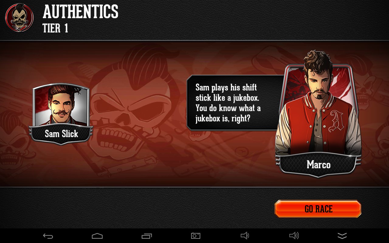 Ścigamy się zawsze jeden na jednego ze sztuczną inteligencją. Tekst rodem z Szybkich i Wściekłych właściwie opisuje sytuację – „Pierwszy po drugiej stronie wygrywa”. Na drugą stronę, czyli metę dostajemy się zmieniając biegi w odpowiednich momentach uważając, by nie przenieść zbyt mało mocy, ale też żeby nie spowodować utraty przyczepności. Tyle.