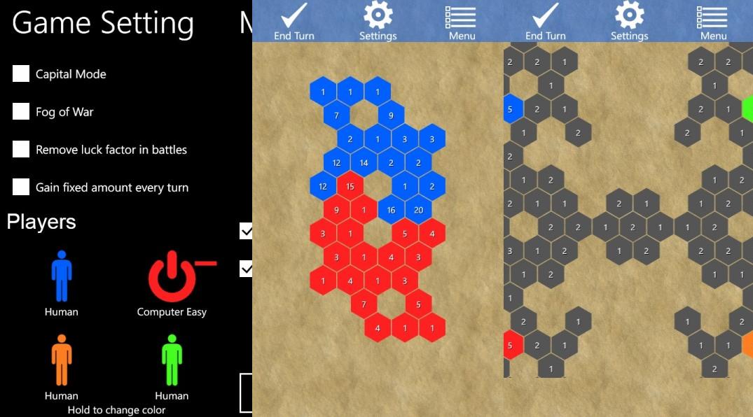 Na początek opiszę dla Was bardzo prostą, lecz niesamowicie wciągającą grę, Hex War. Cała rozgrywka opiera się na tym, że musimy pokonać przeciwników. Teoretycznie jest to banalnie proste, ale wystarczy chwile spojrzeć na tą produkcję, żeby zobaczyć, że na trudniejszych poziomach nie będzie już tak łatwo. Zasady są banalne, dostajemy pola z określonym numerem i po każdej turze ten numer się zwiększa. Wokół nas są puste pola, które musimy zdobyć. Oczywiście przeciwnicy (można grać maksymalnie w 4 osoby) również mogą się rozwijać. To spowoduje, że nie raz będziemy musieli się zastanawiać czy przerzucać nasze jednostki czy może zaczekać, aż zbierze się ich większa ilość i dopiero atakować. Jest to bardzo prosty tytuł, ale nie raz zmusi nas do myślenia bardziej niż rozbudowana gra strategiczna.