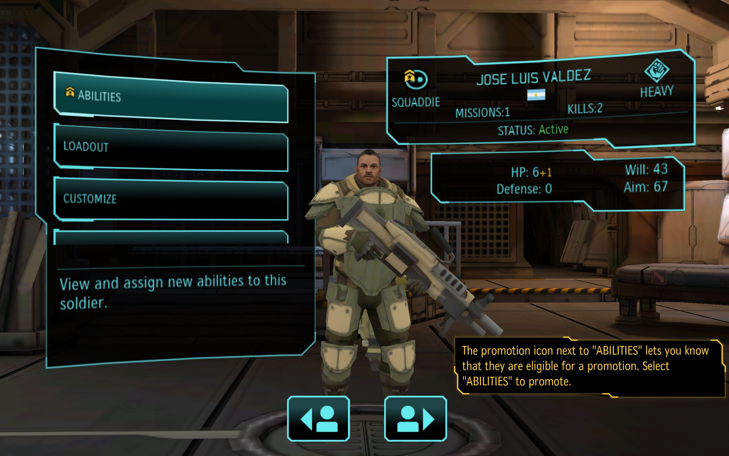 Żołnierze biorący udział w misjach zdobywają doświadczenie, a w ten sposób zbieramy punkty, za które możemy rozwijać ich umiejętności i w ten sposób określić ścieżkę rozwoju. Możemy obrać kilka taktyk – „napakować” konkretny oddział tak, by był niepokonany lub rozwijać każdego po trochu, zbierając coraz więcej wykwalifikowanych jednostek.