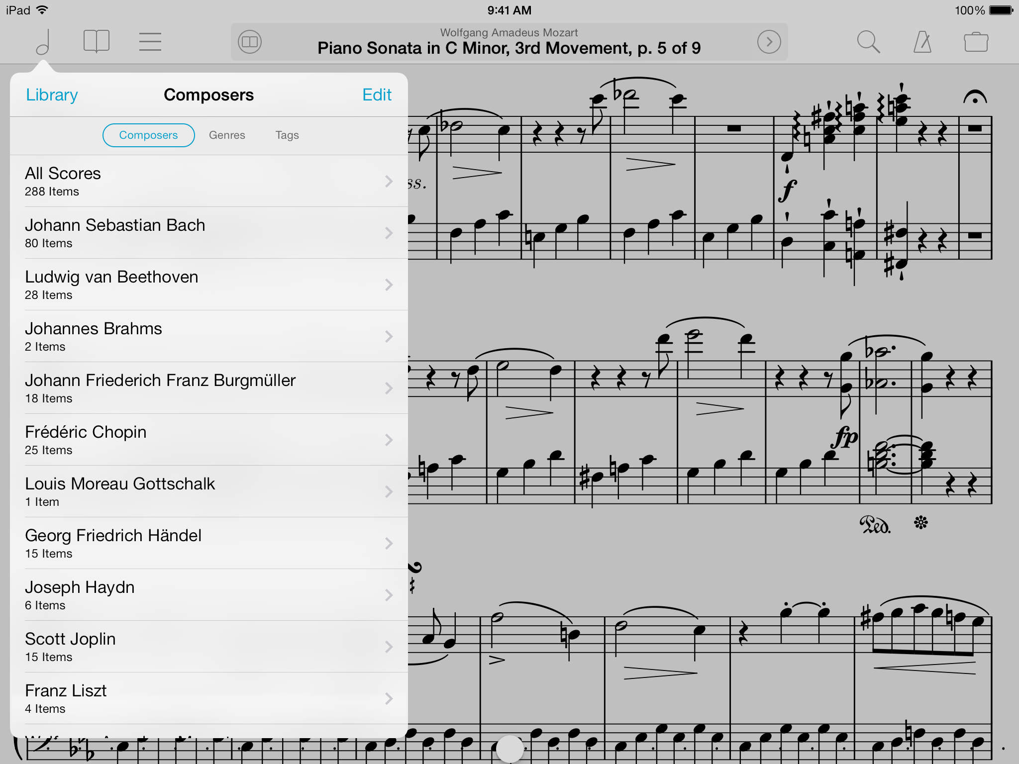 W każdym razie w App Store dostępna jest aplikacja forScore dla iPadów, która sprawa, że organizacja nut jest czymś wspaniałym. Dzięki tej pozycji nie tylko uporządkujesz swoje nuty zapisane w plikach .PDF, ale także, jeżeli dojdzie do ich odczytywania, będziesz mógł nanieść na nie przeróżne notatki i adnotacje oraz skorzystać z podręcznego metronomu.