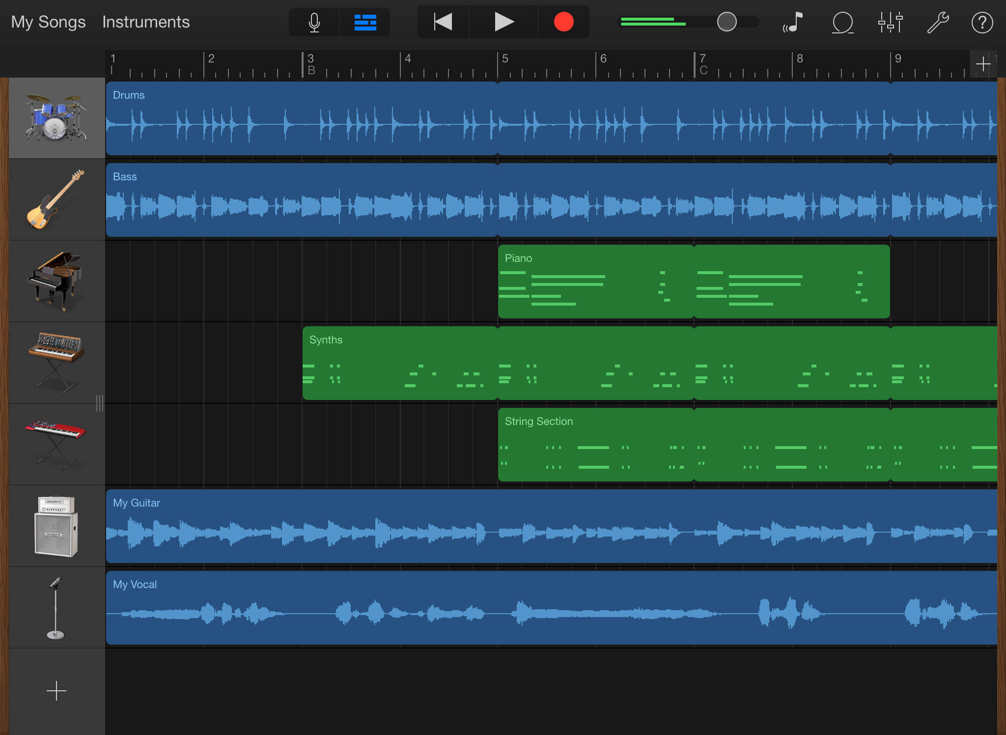 Jeżeli ktoś wcześniej nie miał w ogóle do czynienia z GarageBand, to – trzeba przyznać – przyzwyczajenie się do tej aplikacji będzie trochę trwało, niemniej gwarantuję, że po czasie każdy uzna GarageBand jako kapitalne źródło muzycznej rozrywki. Ułatwieniem podczas pierwszych podrygów z GarageBand może być to, że, w przeciwieństwie do wszystkich opisanych wyżej aplikacji interfejs aplikacji jest kompletnie spolszczony.