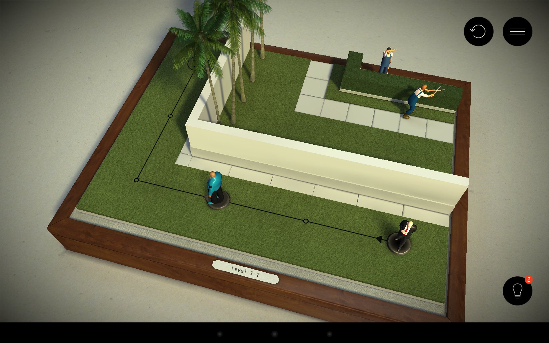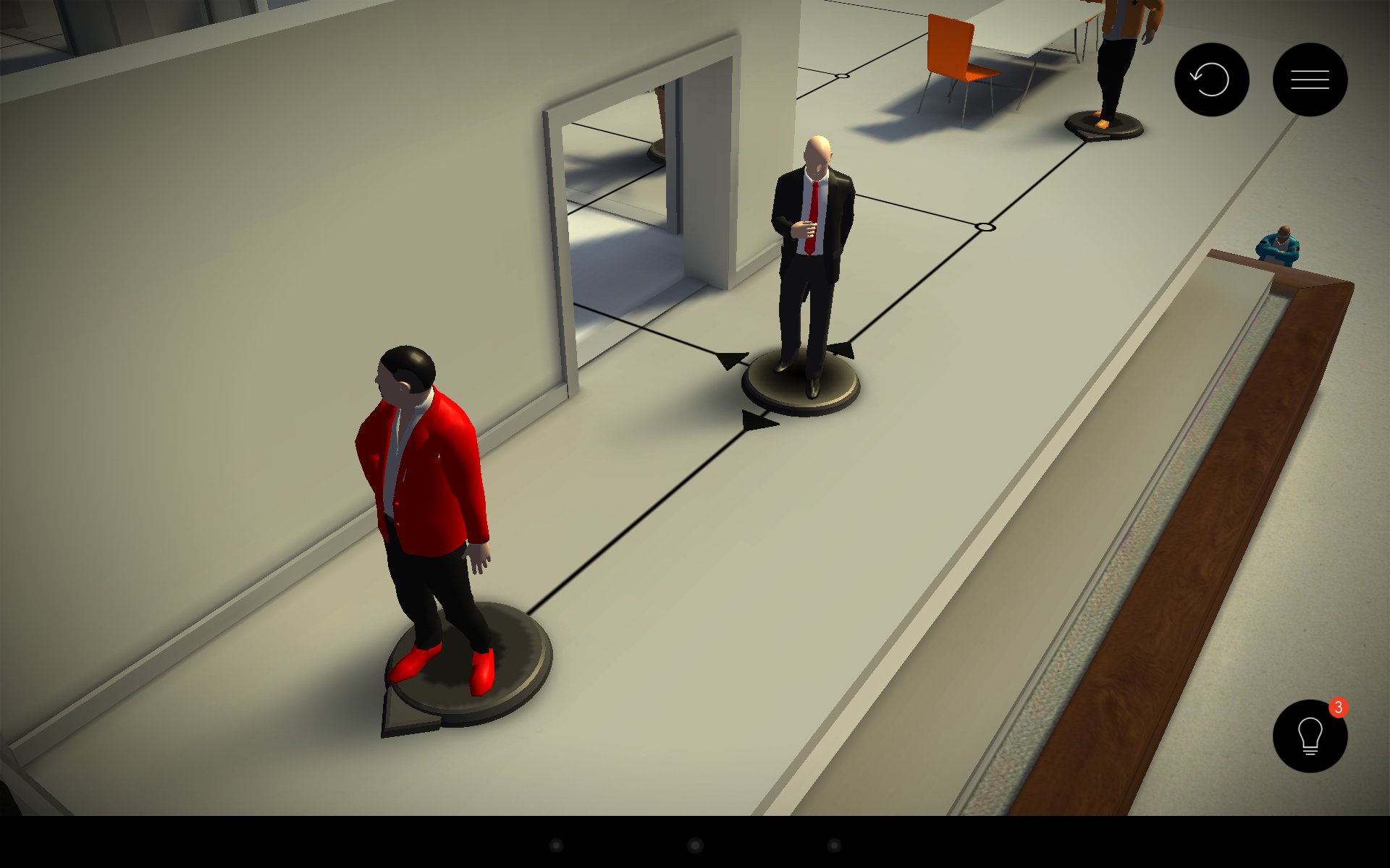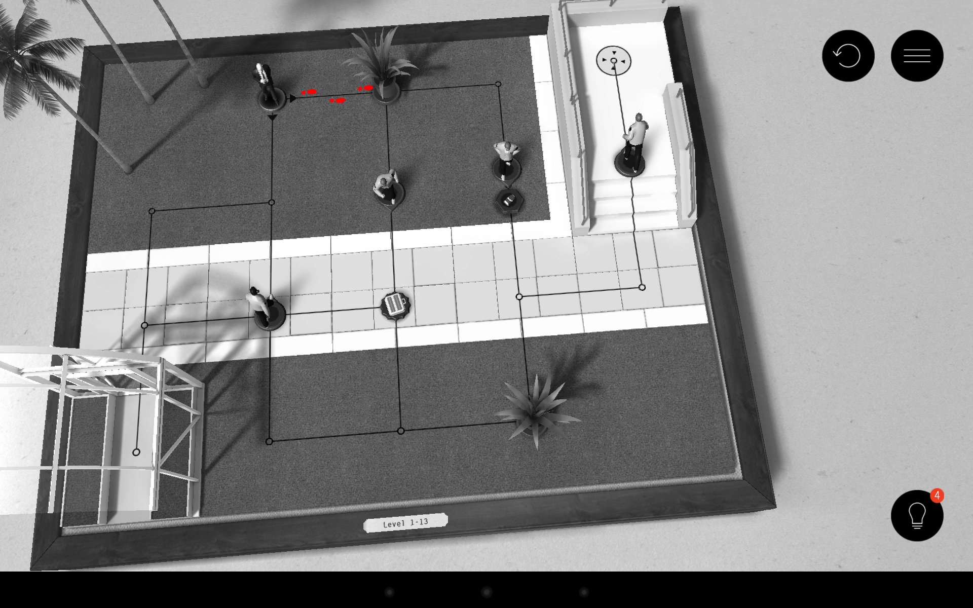 Sposób poruszania się po planszy jest prosty. Mamy wyznaczone linie, po których możemy się poruszać, a poziom uznamy za zaliczony, dostając się do wyznaczonego punktu. Zabijanie nigdy nie było jednak łatwe, dlatego też musimy uważać na ochronę. Strażnicy stoją w miejscu, o ile nas nie zauważą lub nie zwabimy ich w konkretne miejsce. Jeśli znajdziemy się na sąsiadującym polu, a stoją oni twarzą do nas, wykonają ruch w naszym kierunku, strącając nas z planszy. Jeśli z kolei znajdziemy kamień, możemy rzucić go na jedno z sąsiednich pól, a wszyscy w zasięgu zbiegną się w to miejsce – poruszając się turowo, raz my, raz oni.