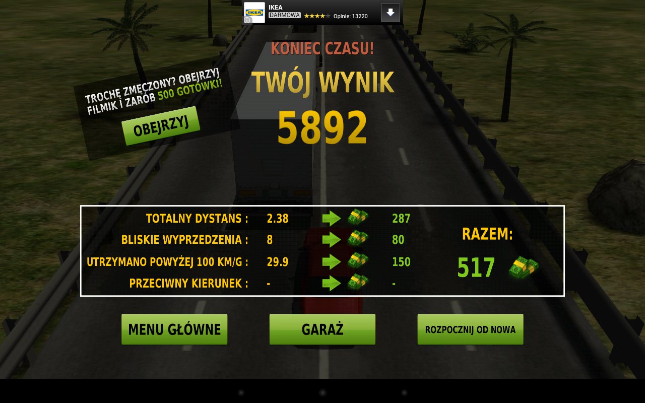 Gra jest w większości darmowa, oferuje 22 samochody i 4 trasy, a to wszystko razem daje sporo radości i wbrew pozorom wywołuje trochę emocji. Jeśli uwielbialiście wyścigi w komputerowych Need For Speedach, Traffic Racer może Wam przypaść do gustu.