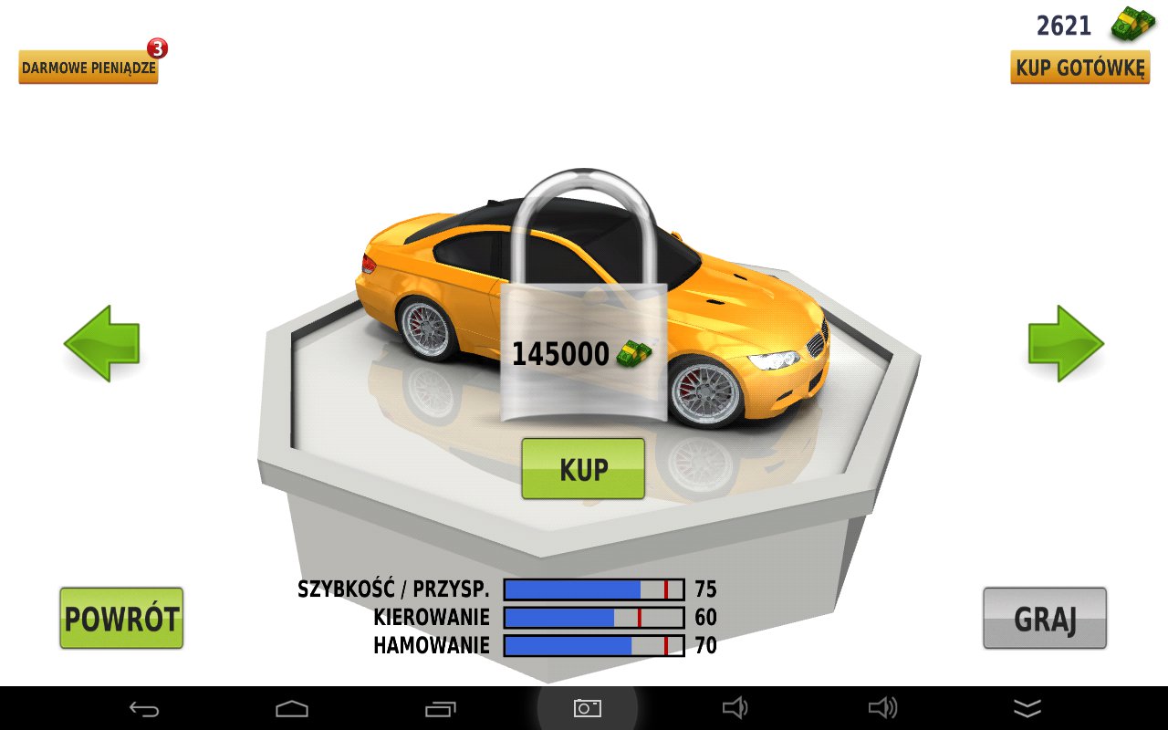 Ostatnie samochody kosztują jednak sporo, a pieniądze zdobywamy powoli. Twórcy nie omieszkali oczywiście zaproponować nam wykupu gotówki za prawdziwe pieniądze. Najtańszy pakiet, który pozwoli nam na zakup każdego samochodu do EVO IX kosztuje 9,37 zł, najdroższy z kolei pozwala na dość dowolne szastanie pieniędzmi, ale to wydatek rzędu 90 zł. Ponadto możemy pozbyć się reklam za 5,75 zł lub podwoić liczbę zdobywanych pieniędzy za 22 zł. Ciężką pracą można uzbierać w końcu wymaganą kwotę na samochód, ale droga do najdroższych jest dość długa. Im szybszy samochód, tym szybciej jednak zdobywamy fundusze – najszybciej dzieje się to w trybie czasowym.