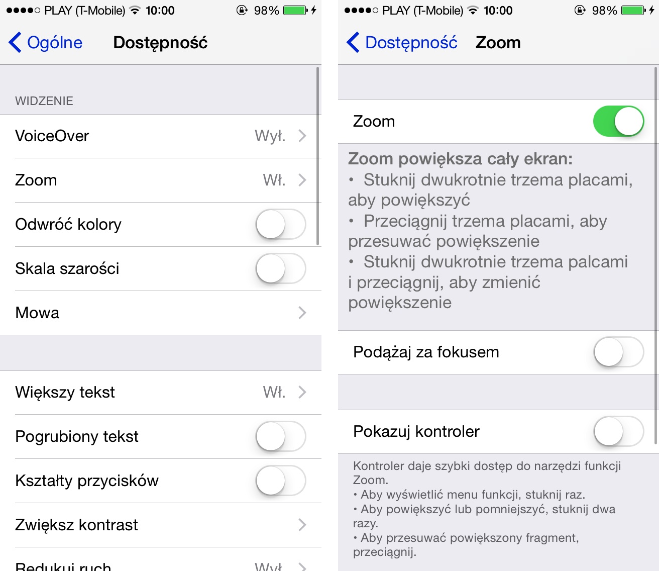 W tym przypadku z pomocą przybywają systemowe funkcje dostępności, a dokładnie Zoom. Wejdź kolejno w Ustawienia > Ogólne > Dostępność i aktywuj funkcję Zoom. Następnie uruchom Instagram, załaduj widok interesującego cię zdjęcia, po czym dwukrotnie naciśnij ekran trzema palcami naraz w celu powiększenia widoku. Przesuwanie kadru również odbywa się przy użyciu trzech palców.