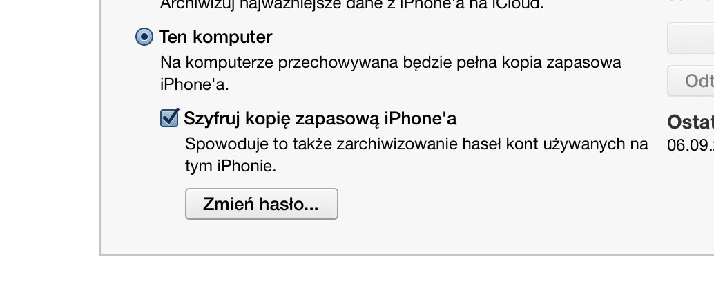 A jeżeli chcesz dodatkowo zwiększyć bezpieczeństwo swojej kopii, iTunes oferuje ci opcję jej zaszyfrowania. Dzięki temu, nawet jeżeli ktoś wejdzie w jej posiadanie, aby móc z niej z skorzystać, będzie potrzebował twojego komputera aby ją rozszyfrować.