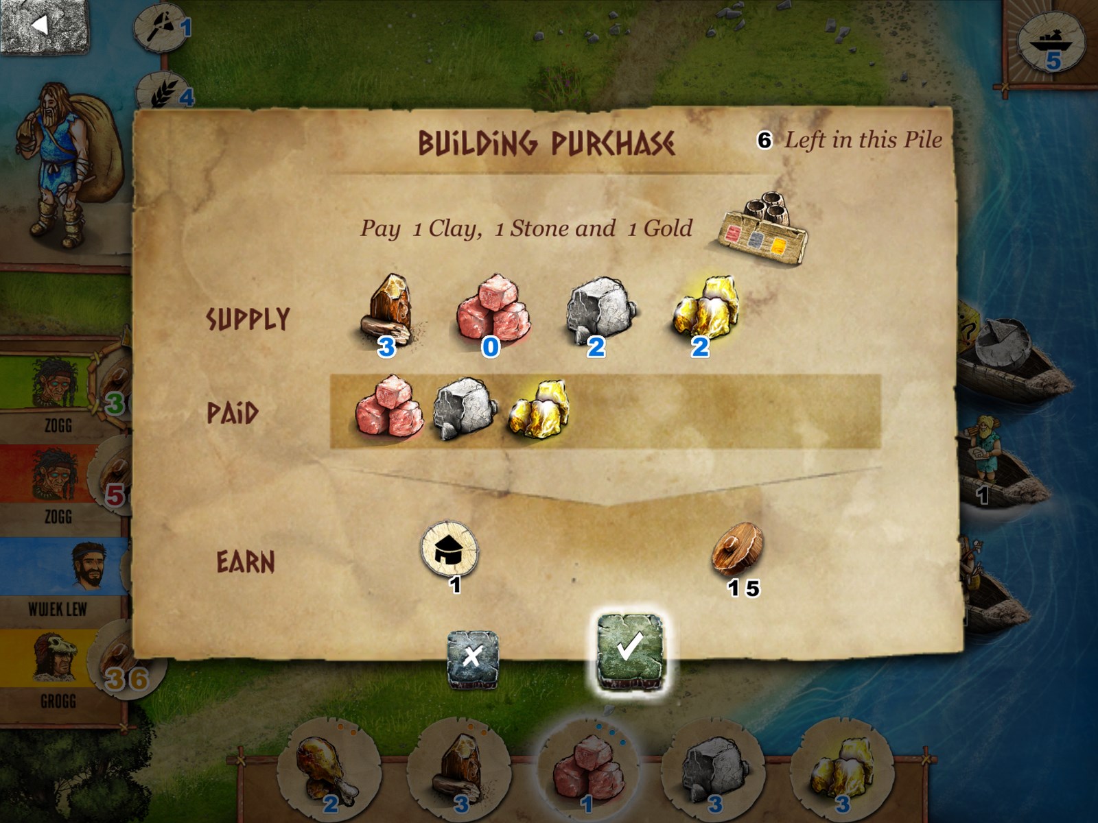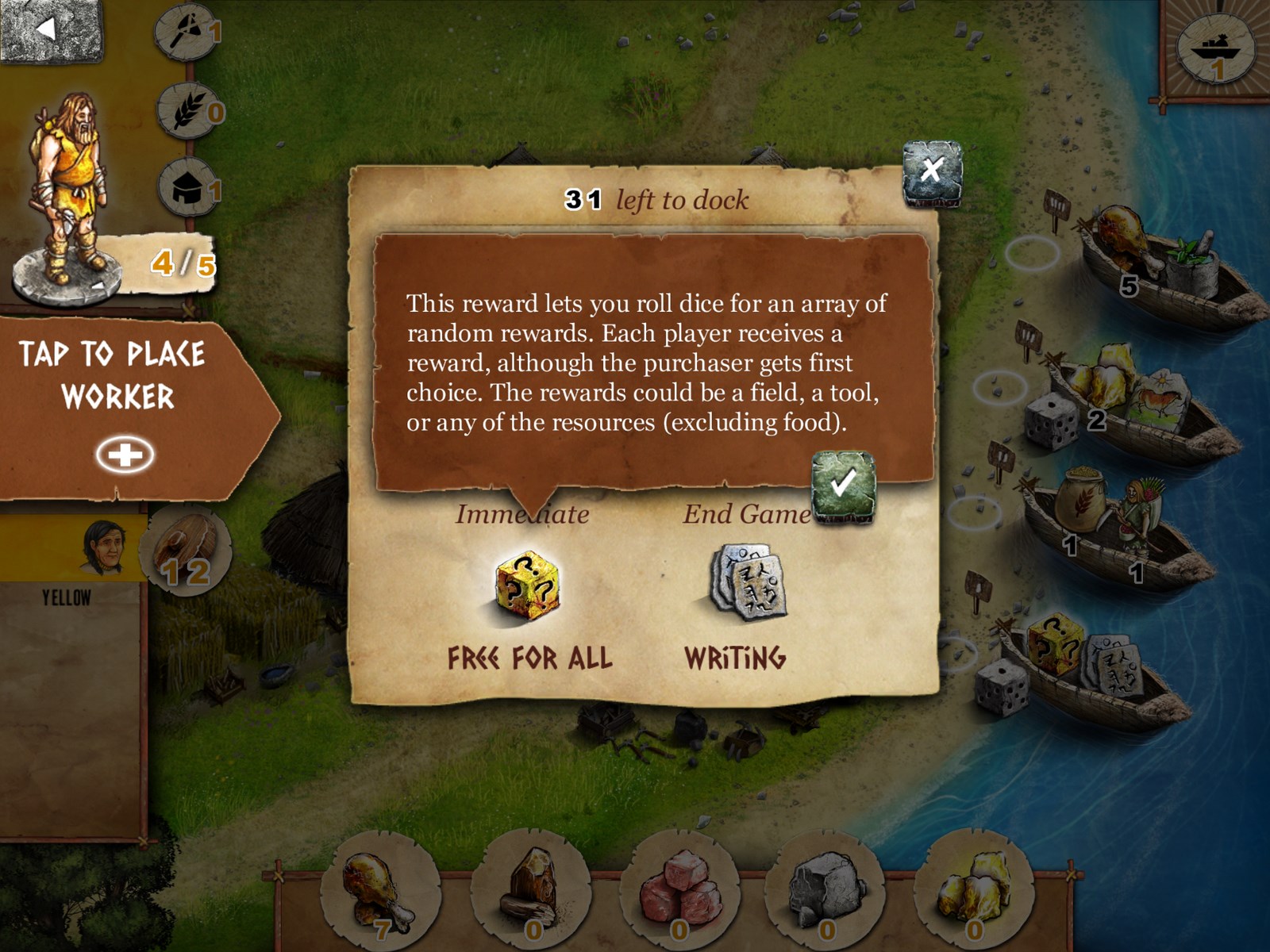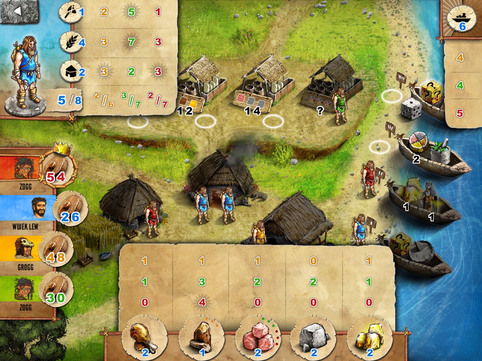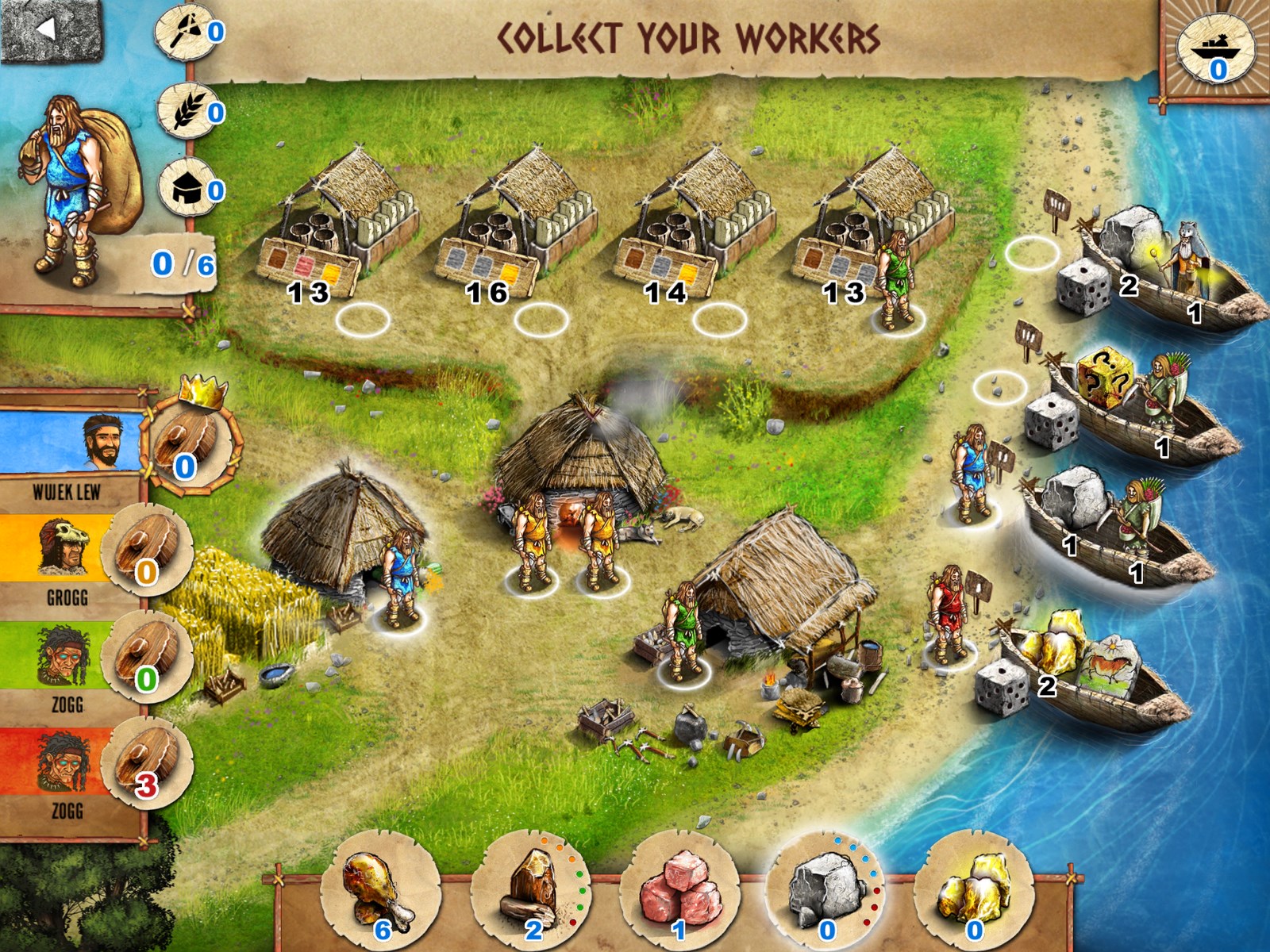 Worker placement, to ciągłe przemieszczanie współplemieńców do wybranych obszarów gry. W aplikacji możemy robić to w dwojaki sposób. Po pierwsze, przeciągając postać do danego miejsca. Drugi sposób to kliknięcie na wybrane pole ekranu, po czym ukaże się nam opis miejsca z możliwością wybrania akcji postawienia swojego „robotnika”. Danie graczowi wyboru jest dobrym rozwiązaniem. Na ekranie iPhona przeciąganie palcem postaci jest pewnie wygodne, na ekranie iPada już mniej.