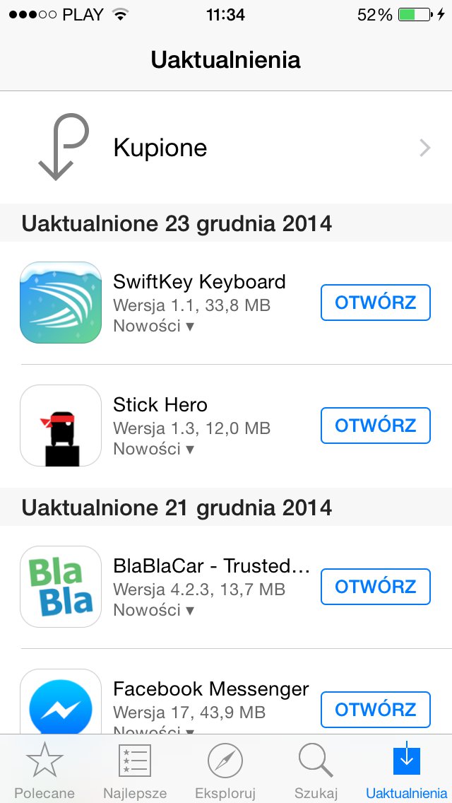 Od dłuższego czasu w aplikacji App Store, tuż pod dostępnymi aktualizacjami, wyświetlana jest historia ostatnio zaktualizowanych aplikacji. Najprawdopodobniej w ten sposób Apple postanowił wypełnić białe pole jakimikolwiek informacjami, które – nie oszukujmy się – najistotniejsze nie są. Jeżeli więc chciałbyś się ich pozbyć, wystarczy zainstalować drobne narzędzie NoUpdateHistory, które natychmiast pozbawi kartę Uaktualnienia informacji o ostatnio zaktualizowanych aplikacjach.