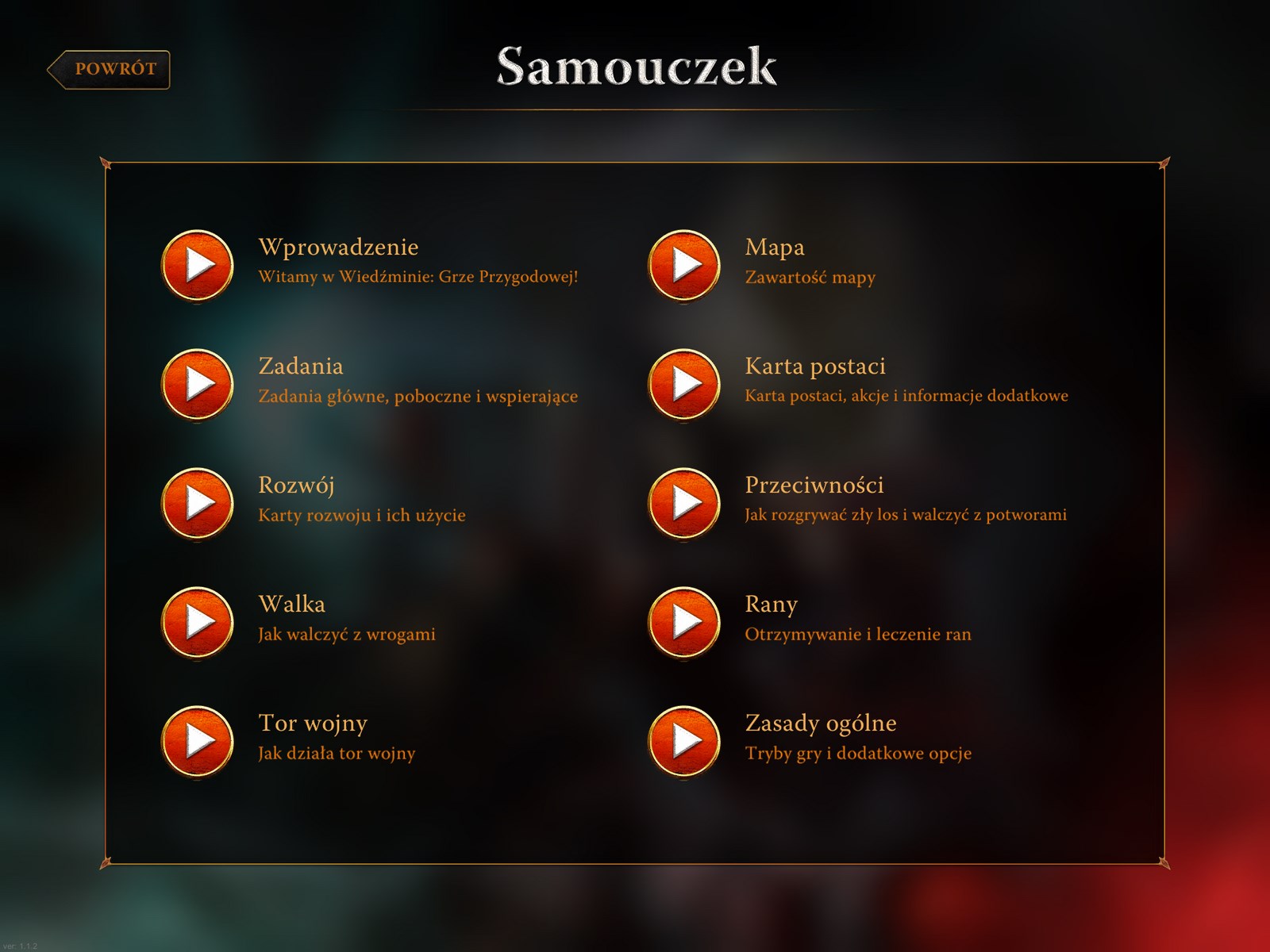 Niezależnie jaką postacią rozpoczniemy rozgrywkę, swoją przygodę winniśmy rozpocząć od zaznajomienia się z zasadami. W przeciwieństwie do szkolenia jakie przechodzili adepci sztuki wiedźmińskiej, nie będą to praktyczne zajęcia. Przypomina ono raczej żmudne studiowanie ksiąg z zaklęciami, gdyż na gracza czeka spisany zbiór zasad lub samouczek w postaci dziesięciu filmików. Opisane reguły nie zawierają żadnych ilustracji, więc co najwyżej posłużyć mogą jako encyklopedyczna pomoc w trakcie rozgrywki. Dla początkujących graczy, próba nauki reguł poprzez samouczek także może być kłopotliwa. Zdecydowanie zabrakło interaktywnego tutorialu.